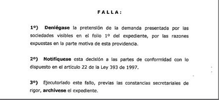 “En el fallo se denota cierto tinte político, pues la razón para denegar las pretensiones es la salida mas rápida y poco meditada, que ni siquiera fue solicitada o exhibida en la contestación de la demanda por Coljuegos.” Afirmo Pacho Algarra , apoderado de los demandantes quien aseguró que hará uso de esta instancia pues considera que sus argumentos no fueron valorados en profundidad