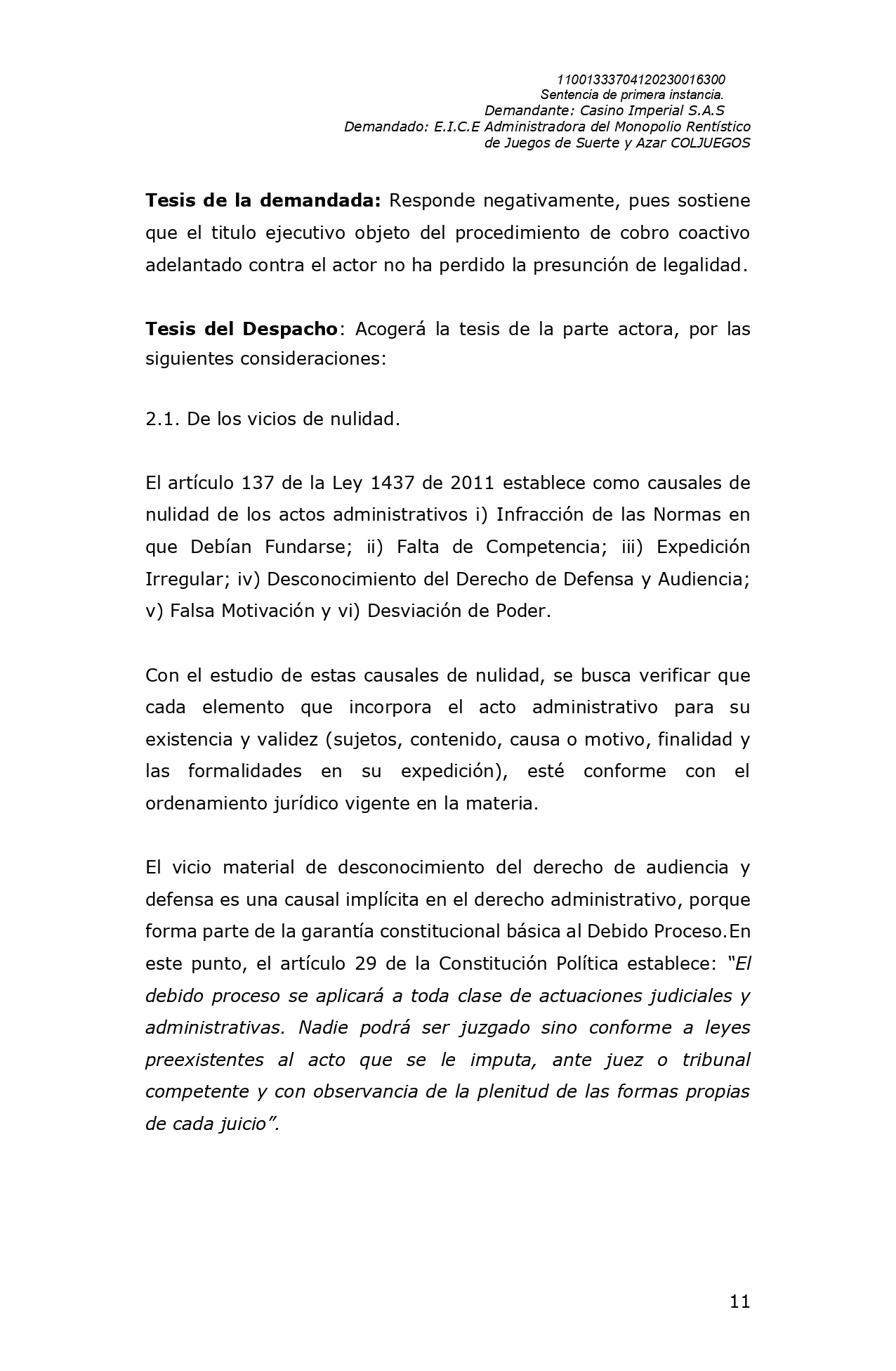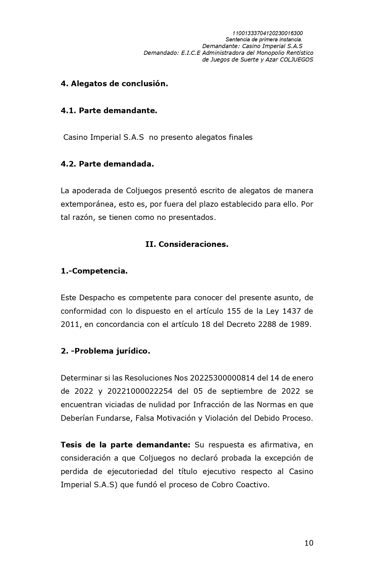 A las graves fallas que presenta el departamento jurídico como la demora en la aprobación de contratos, uno de los puntos que favorecieron la decisión con respecto al caso fue que “la apoderada de Coljuegos presentó escrito de alegatos de manera extemporánea, esto es, por fuera del plazo establecido para ello. Por tal razón, se tuvieron como no presentados.”