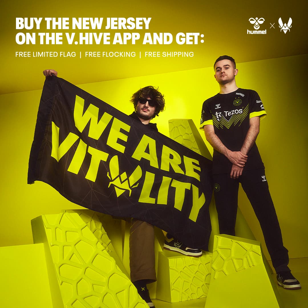 Para celebrar la ocasión, Team Vitality se enorgullece de anunciar el lanzamiento de una serie especial de camisetas de edición muy limitada. La clásica camiseta negra y azul del club contará con detalles dorados en el nombre del jugador, así como en las dos estrellas en el pecho.
