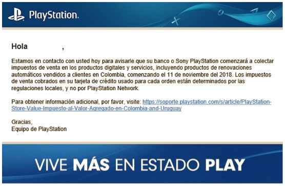 El Decreto n.º 1415 de la DIAN (Dirección de Impuestos y Aduanas Nacionales) exige a los proveedores de servicios digitales como PlayStation® Store, League of Legends(Lol), Apple Store, Netflix que todas las compras realizadas en Colombia sean objeto de recaudación del IVA (19%)
