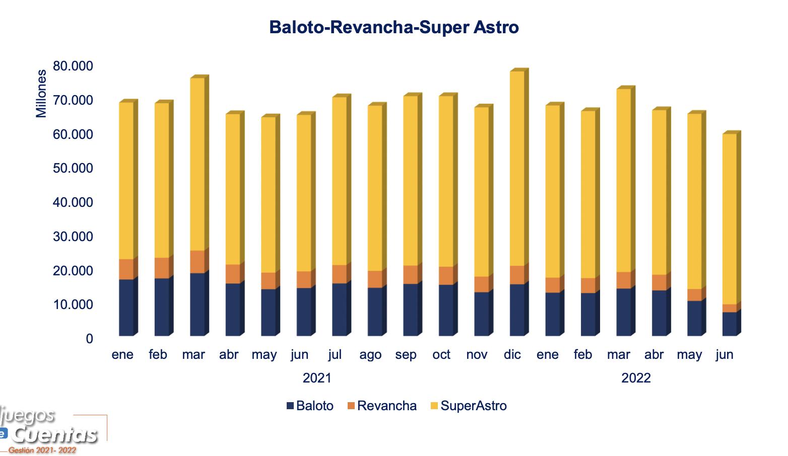 Para este año Baloto y Revancha reportan ventas este año de $93.000 millones de pesos mientras que Super Astro registra $302.000 millones de pesos