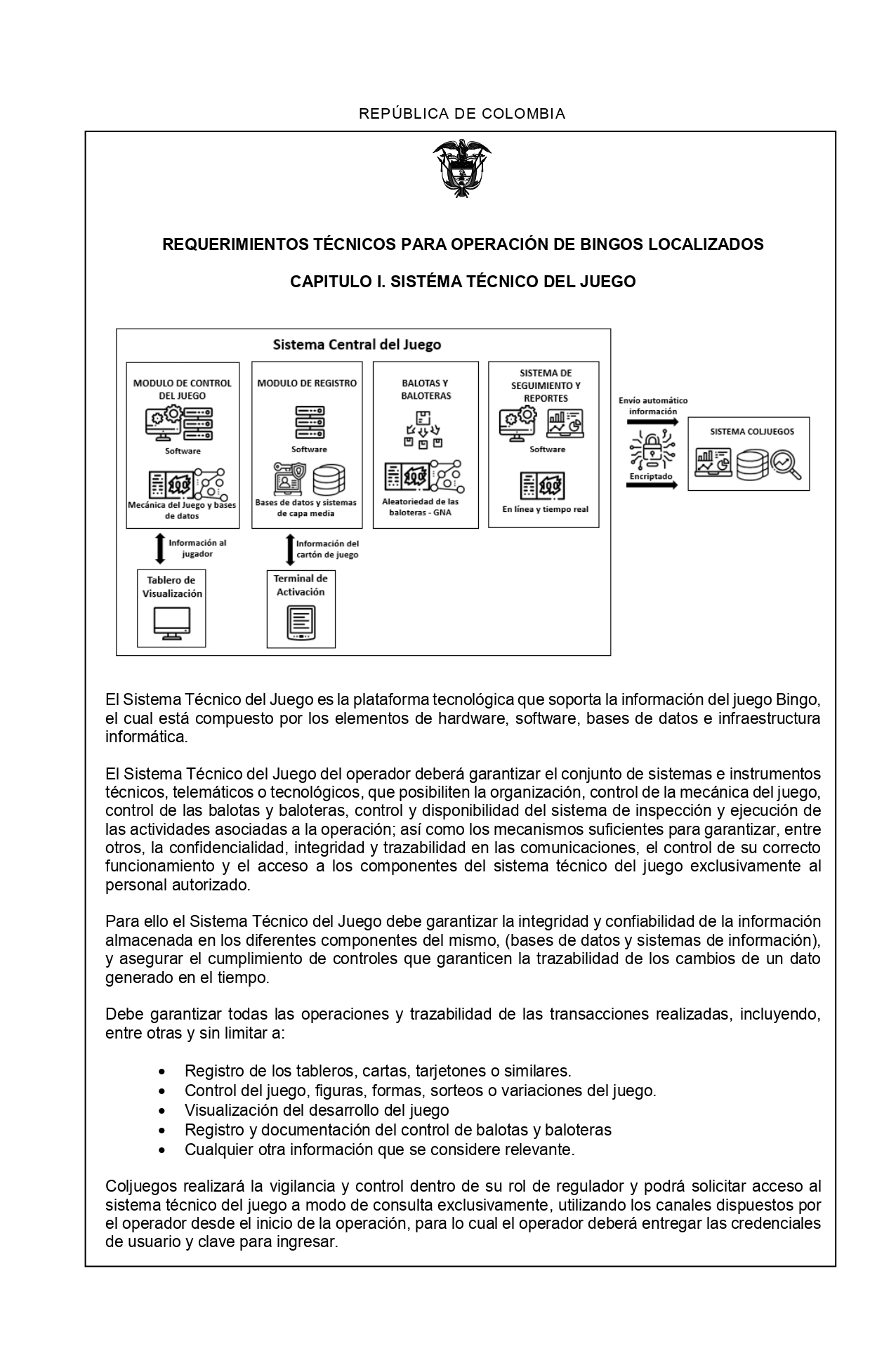 Coljuegos ha desarrollado los parámetros con los cuales, los bingos localizados en Colombia deberán conectarse igual que como ocurre con las máquinas de casino. Se entiende por bingos localizados aquellos cuya actividad se encuentra abierta al público en un lugar determinado y como condición el apostar debe desplazarse hasta allí para realizar su apuesta.