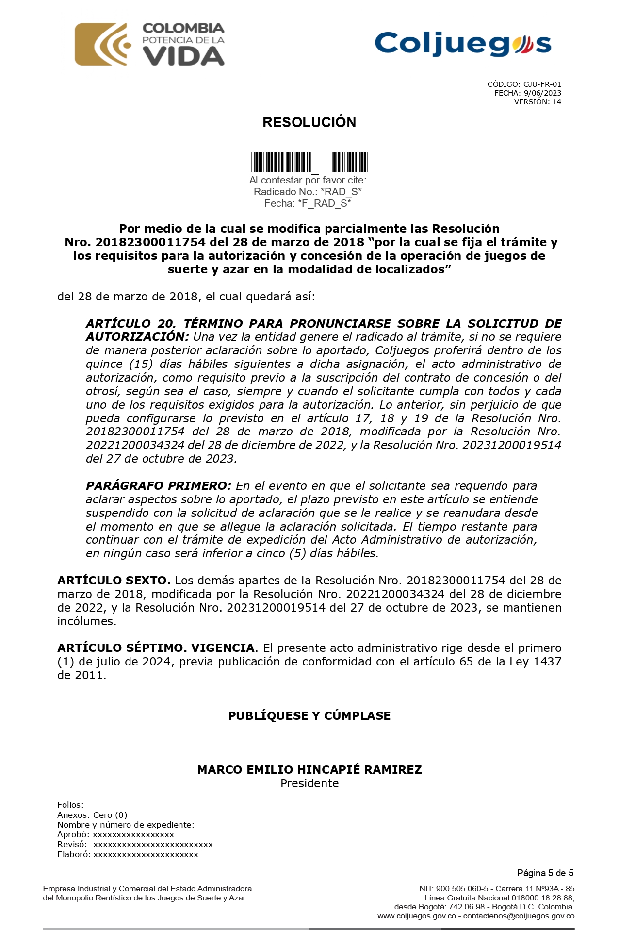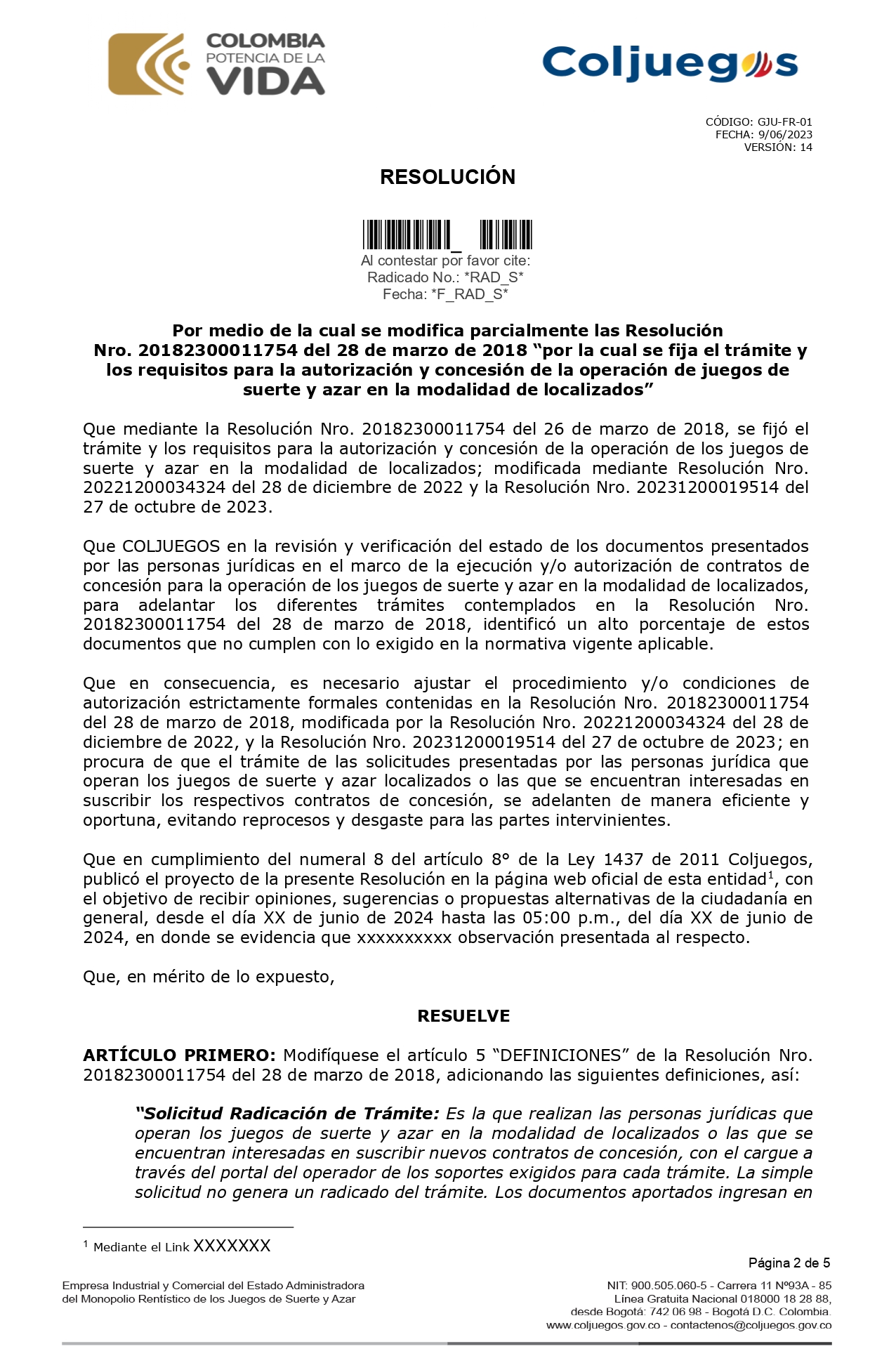 El documento puede leerse a continuación y Coljuegos recibirá comentarios hasta el 14 de junio de 2024 a las 16:00 en la dirección de correo jayala@coljuegos.gov.co.
