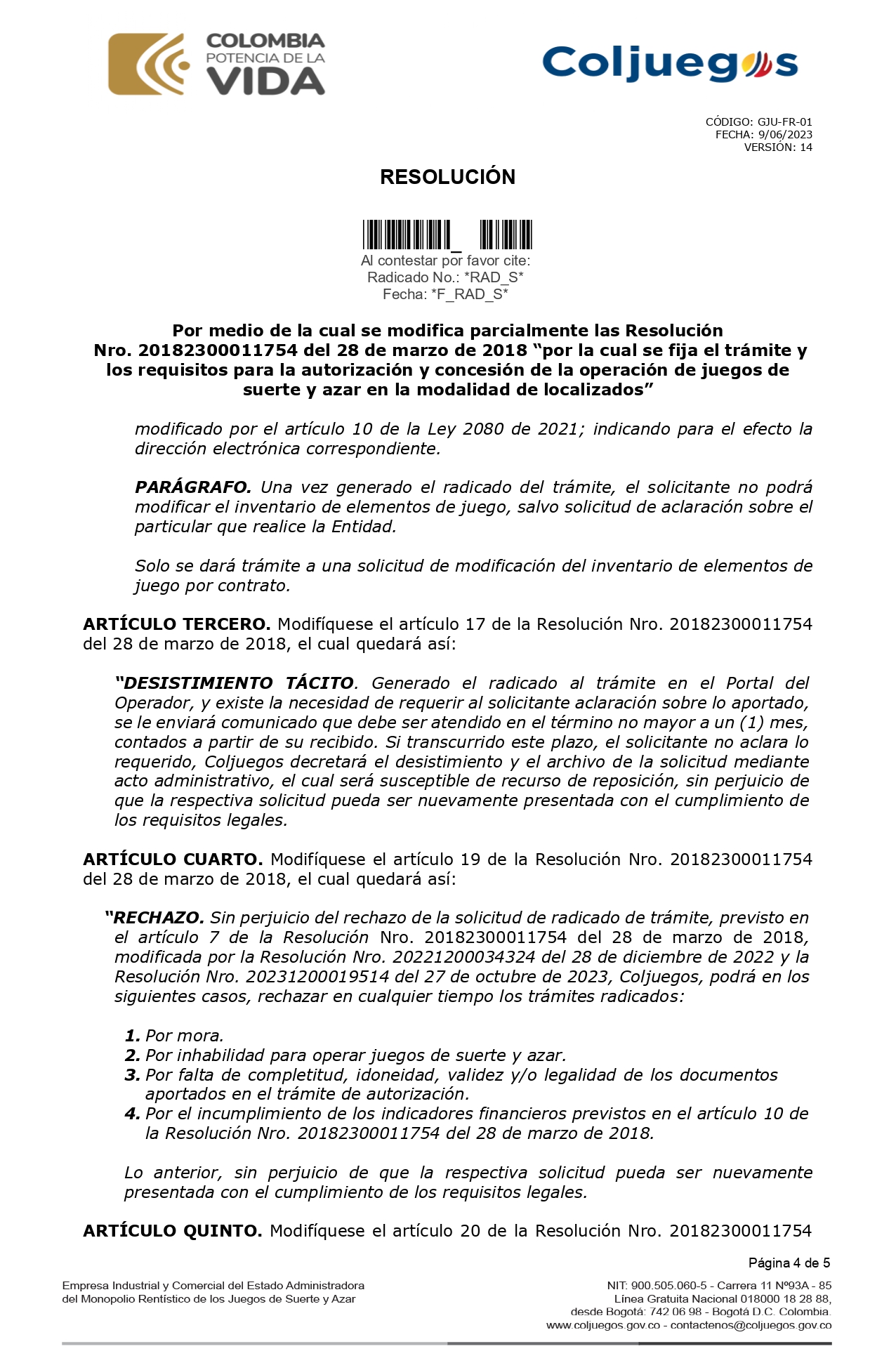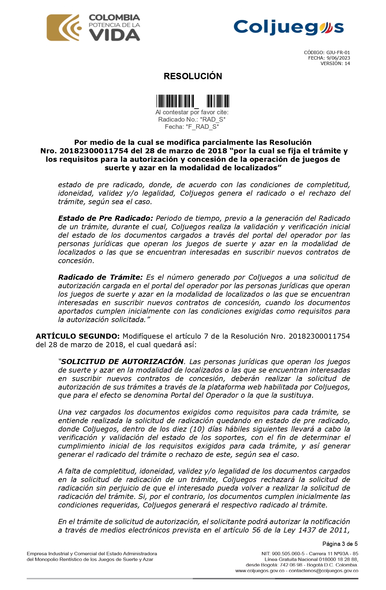 Cabe resaltar que en el mismo proyecto de resolución se plantean los escenarios que anularían las solicitudes, tales como: “A falta de completitud, idoneidad, validez y/o legalidad de los documentos cargados en la solicitud de radicación de un trámite, Coljuegos rechazará la solicitud de radicación sin perjuicio de que el interesado pueda volver a realizar la solicitud de radicación del trámite. Si, por el contrario, los documentos cumplen inicialmente las. condiciones requeridas, Coljuegos generará el respectivo radicado al trámite.”