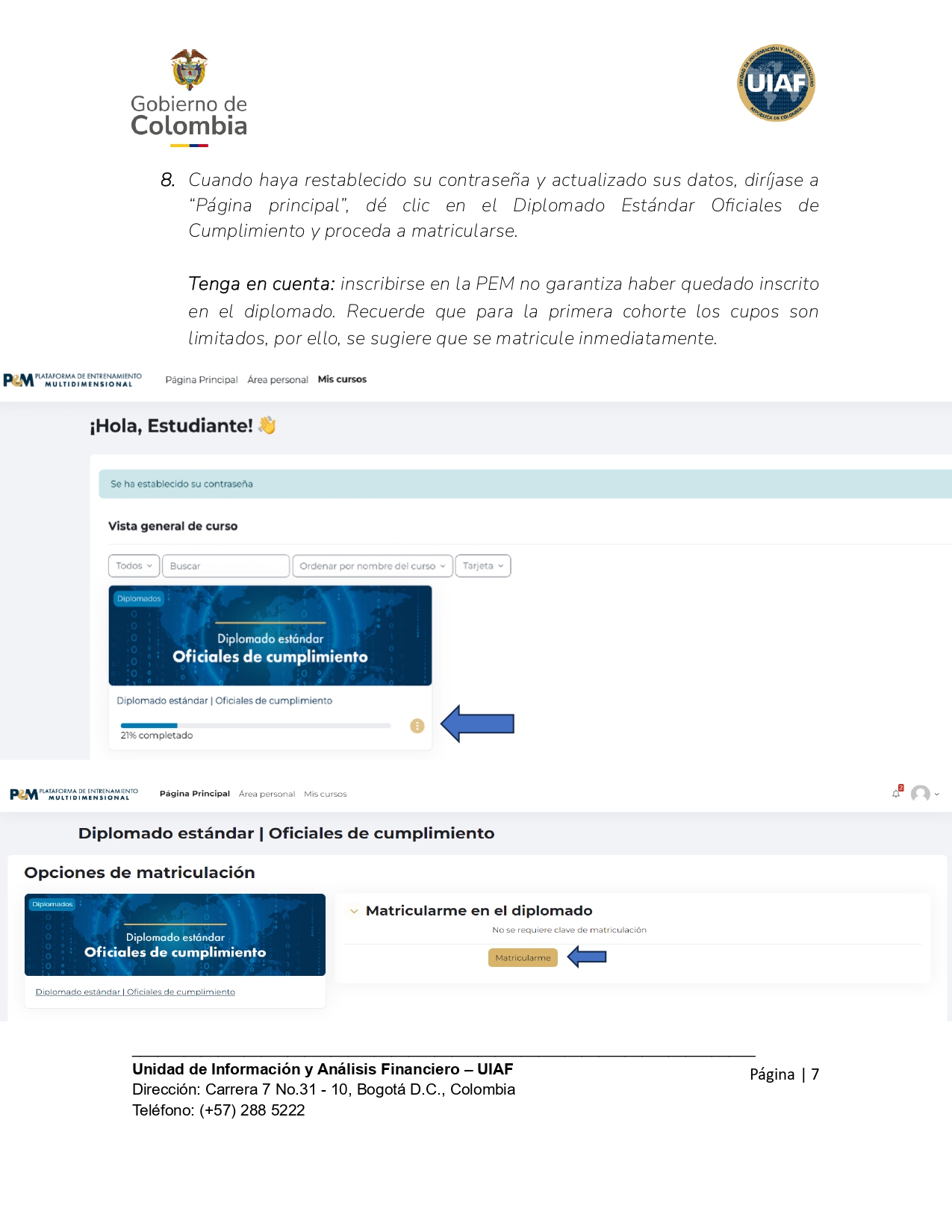 Sabemos de su interés para recibir la formación ofrecida a través de la PEM. Por ello, le presentamos una guía de cómo inscribirse en nuestra plataforma y matricularse al primer diplomado, dirigido a oficiales de cumplimiento y sujetos obligados a reportar que estén inscritos en el Sistema de Reporte en Línea (Sirel).