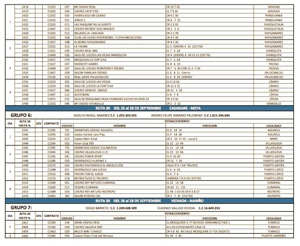 A continuación, le dejamos la lista con los casinos que visitaran esta vez los funcionarios y sus correspondientes encargados.