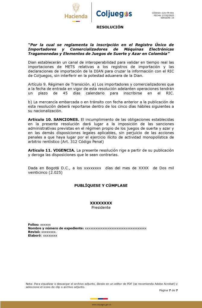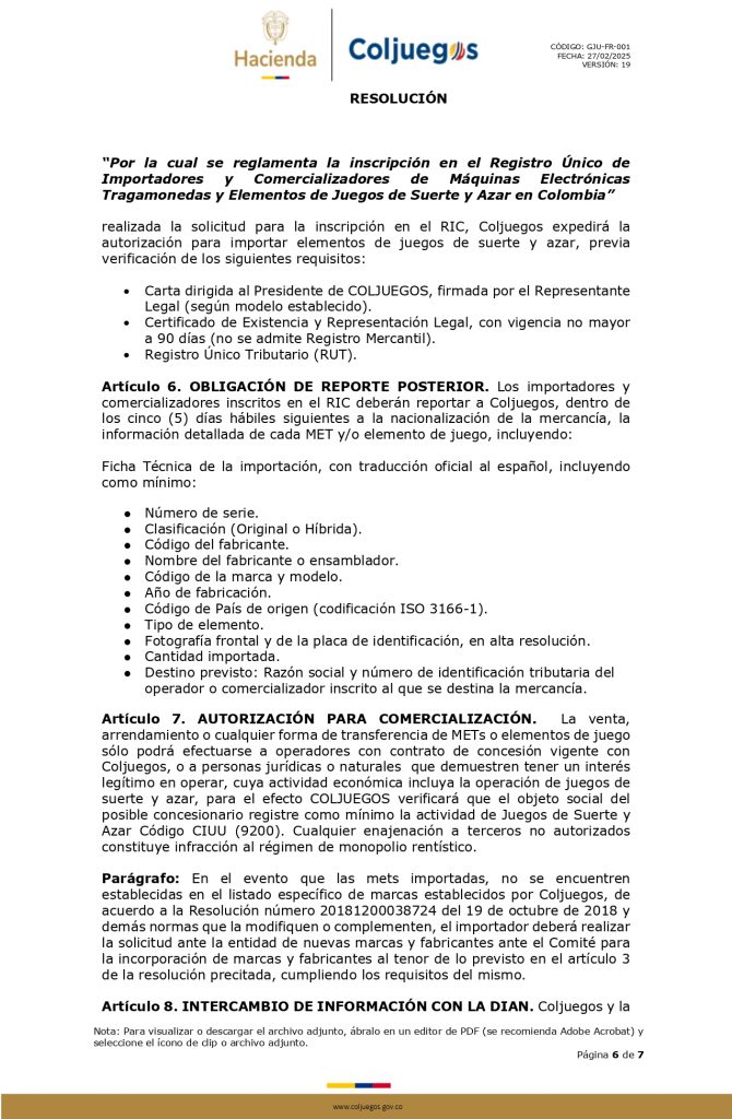 Un elemento clave es la articulación con la autoridad aduanera. La resolución ordena avanzar hacia la interoperabilidad entre Coljuegos y la DIAN, de manera que las declaraciones de importación y los registros del RIC puedan cruzarse en tiempo casi real. En teoría, esto permitiría detectar de inmediato importaciones de tragamonedas que no estén asociadas a un importador registrado, que no cuenten con destino declarado a un operador habilitado o que no se correspondan con modelos y fabricantes reconocidos por el regulador.