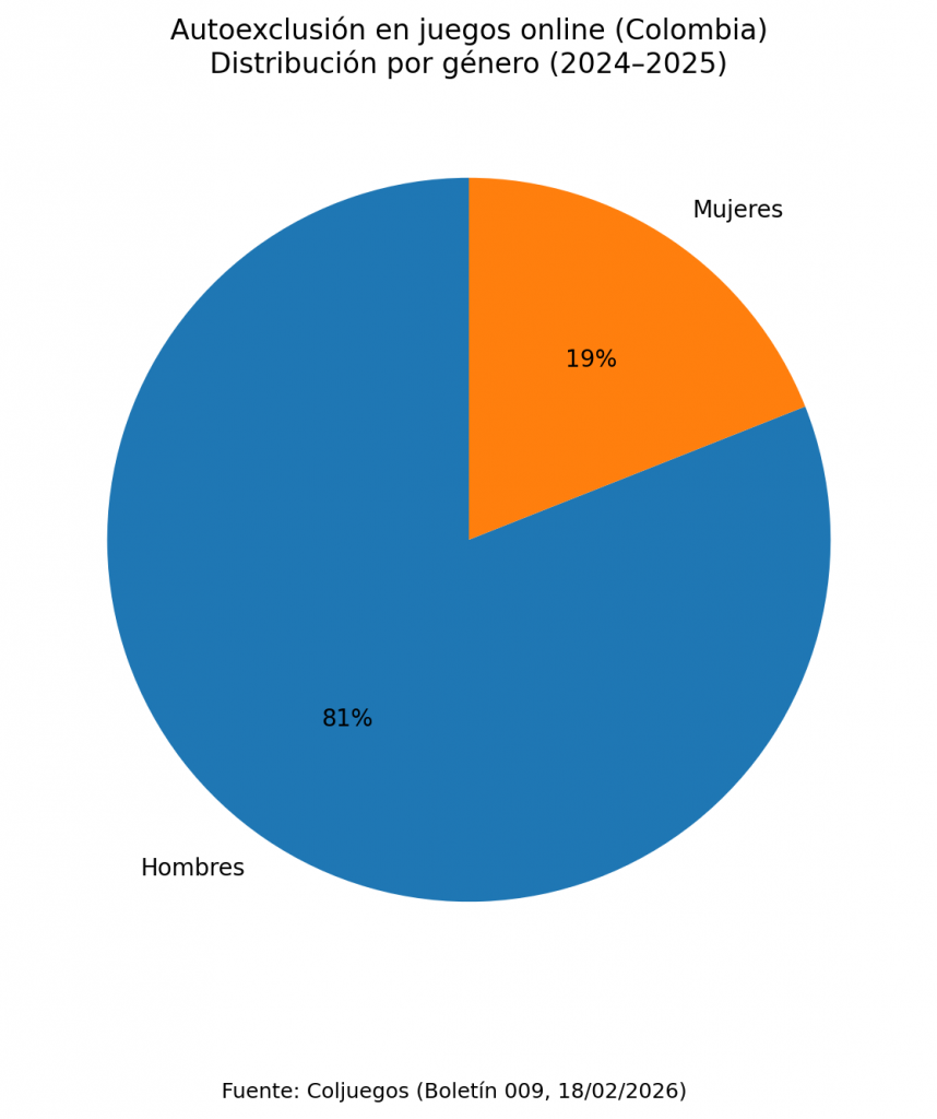 Las cifras también muestran una tendencia estable por género: en 2024 y 2025, el 81% de las autoexclusiones correspondió a hombres y el 19% a mujeres.
