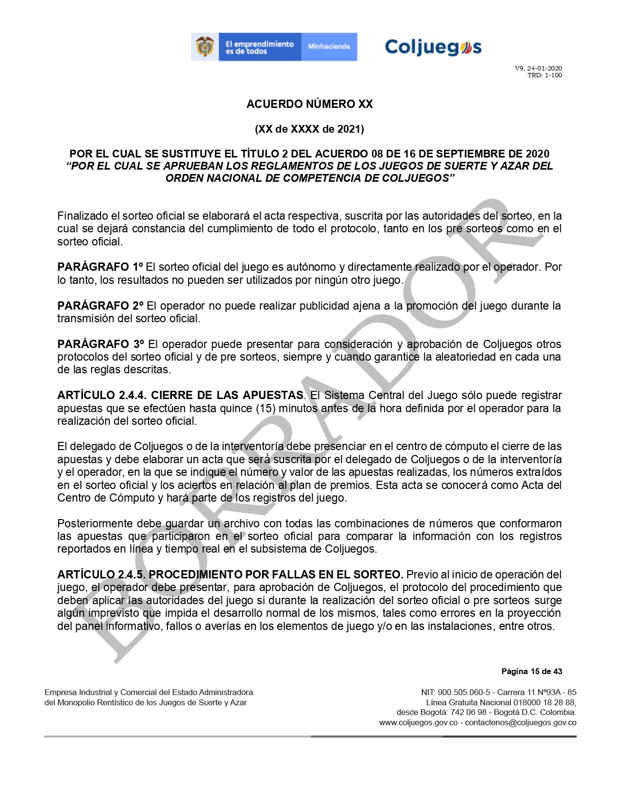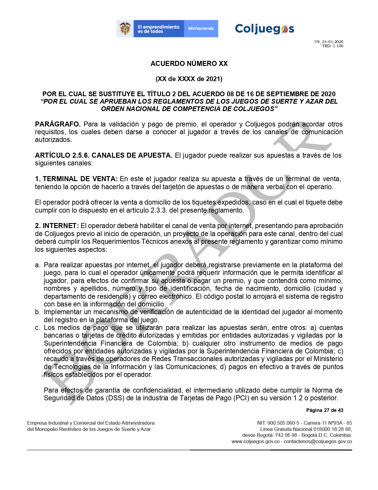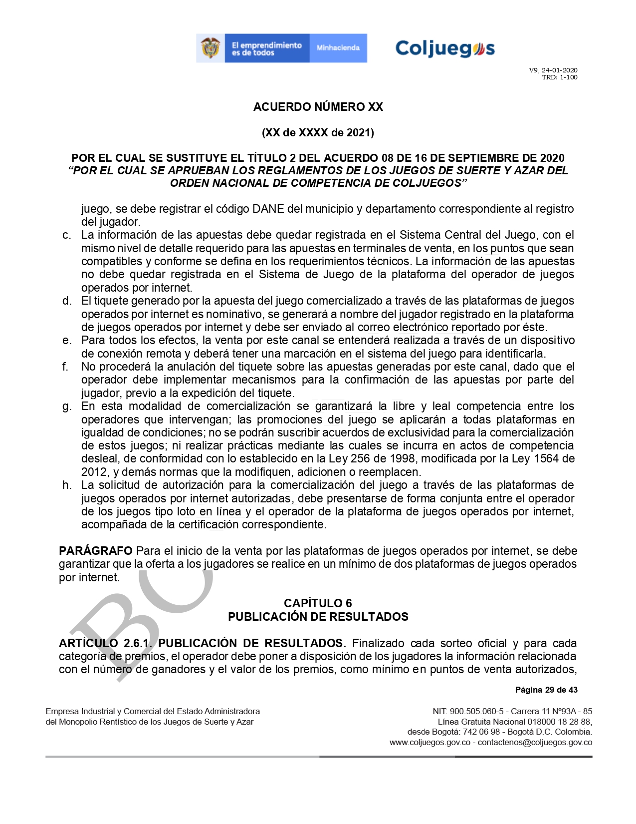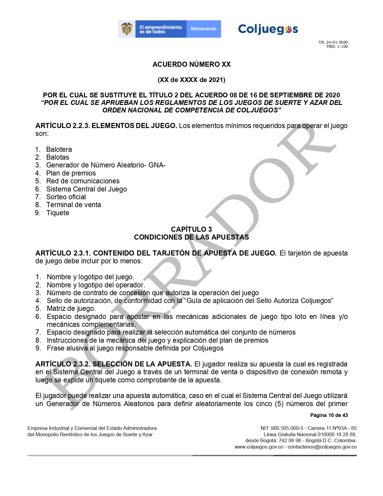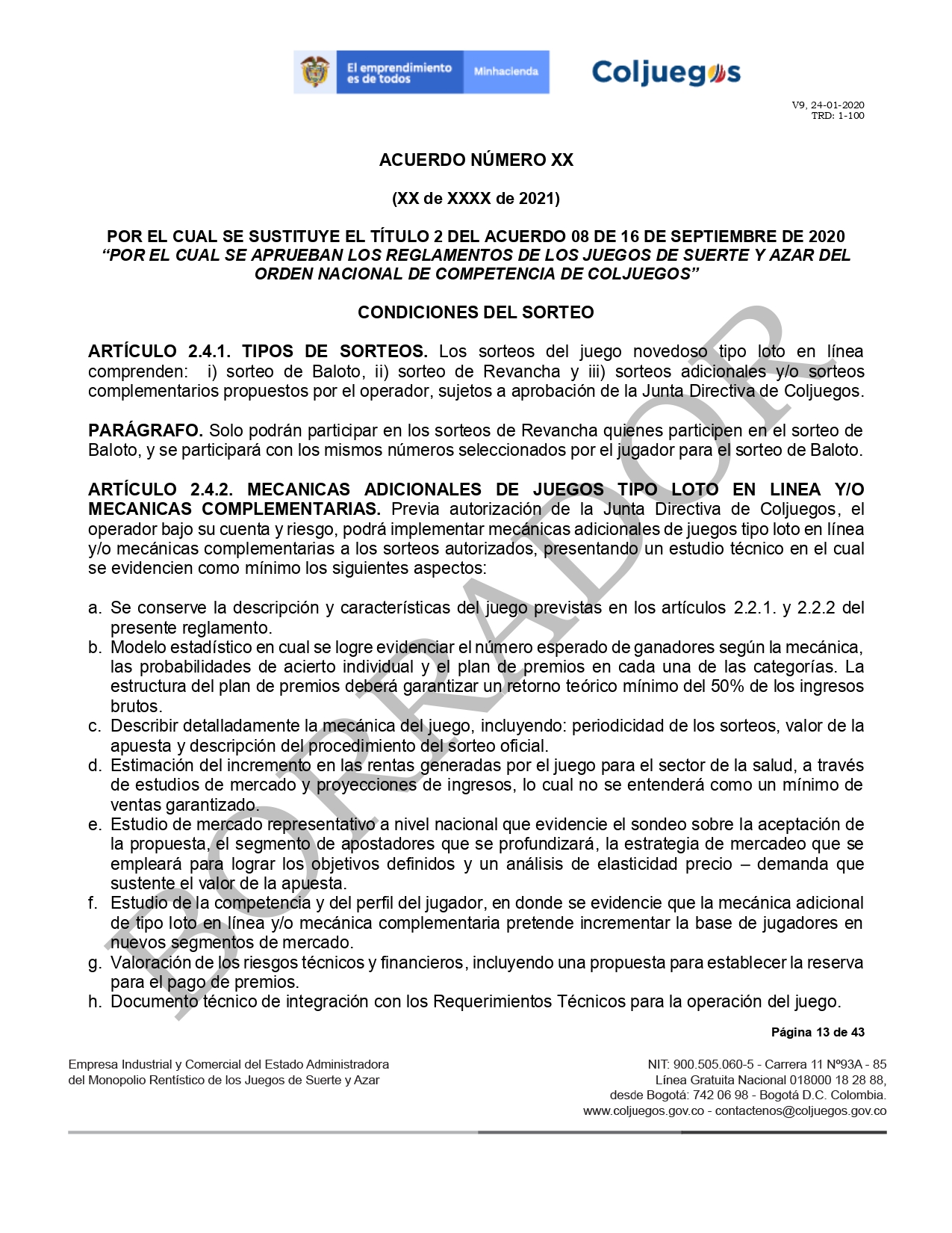 Coljuegos publico el borrador del proyecto en el que se aprueban los reglamentos de juegos de suerte y azar del orden nacional de competencia de la entidad. Para esto, los actores interesados deberán enviar sus comentarios hasta entes del 26 de abril.