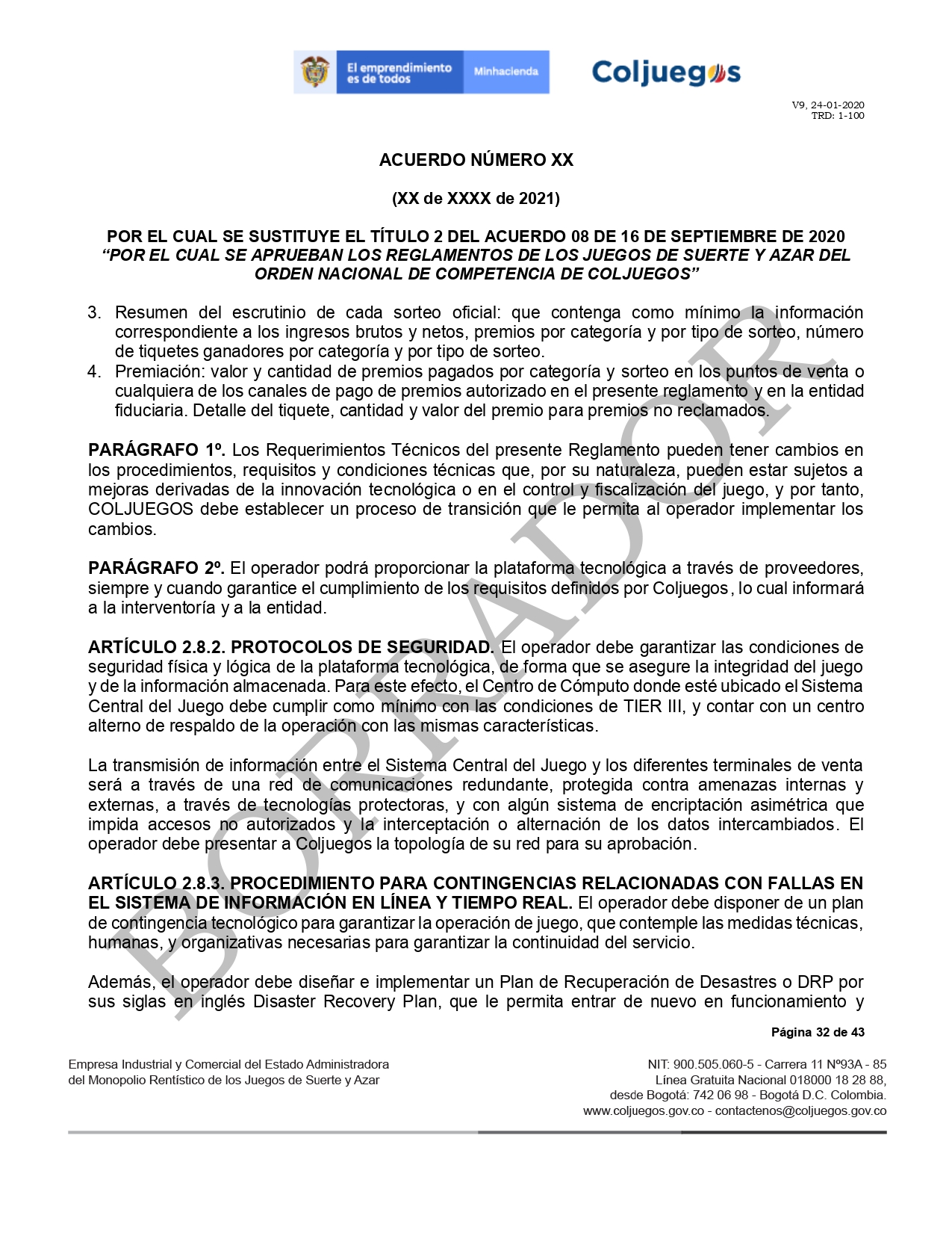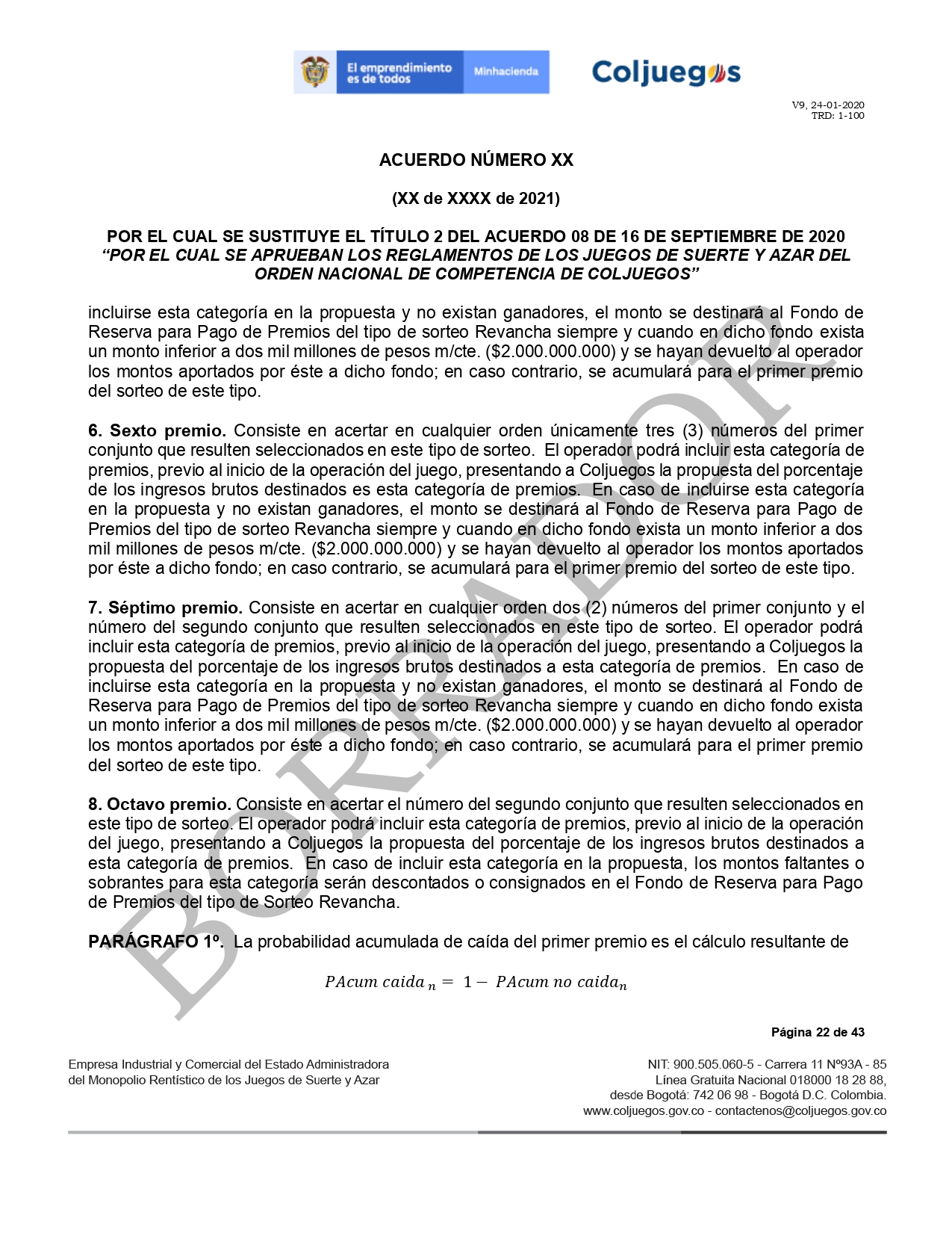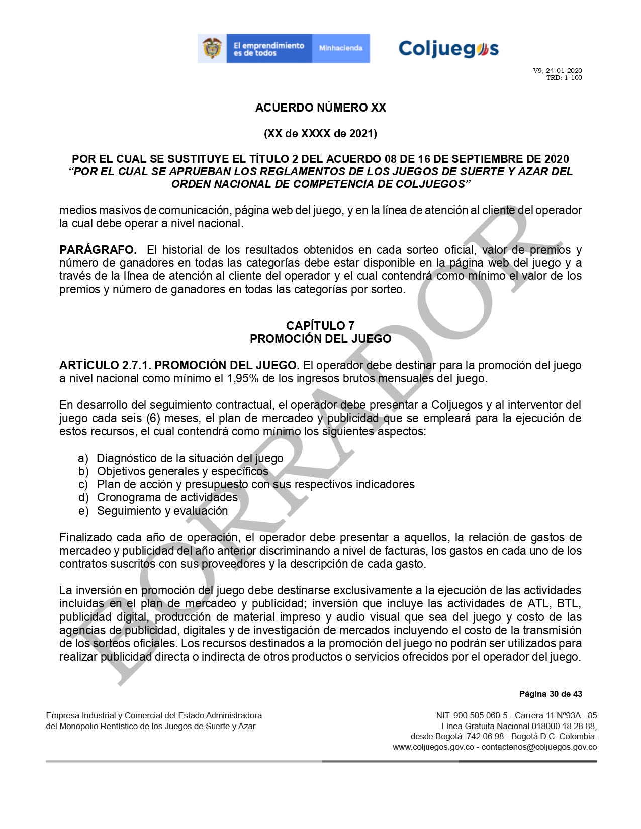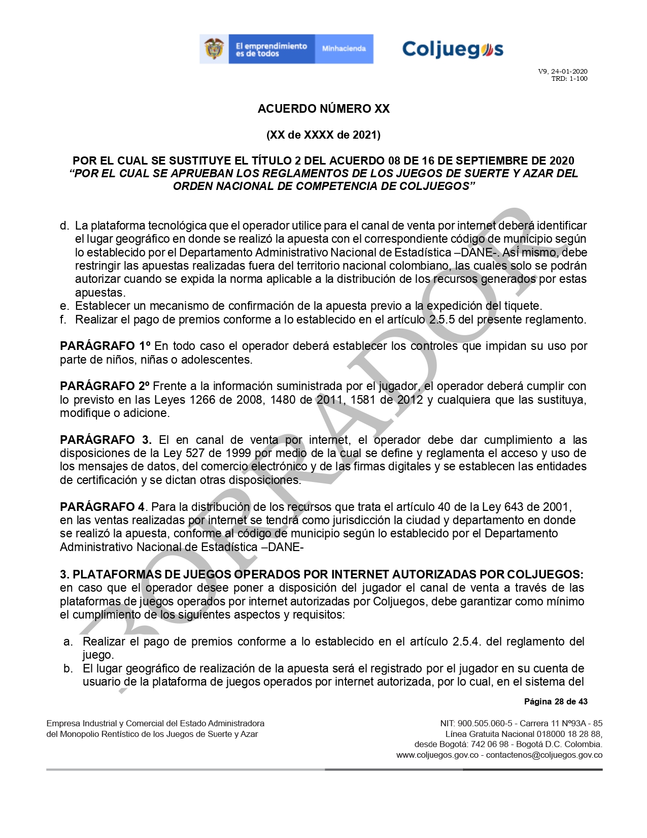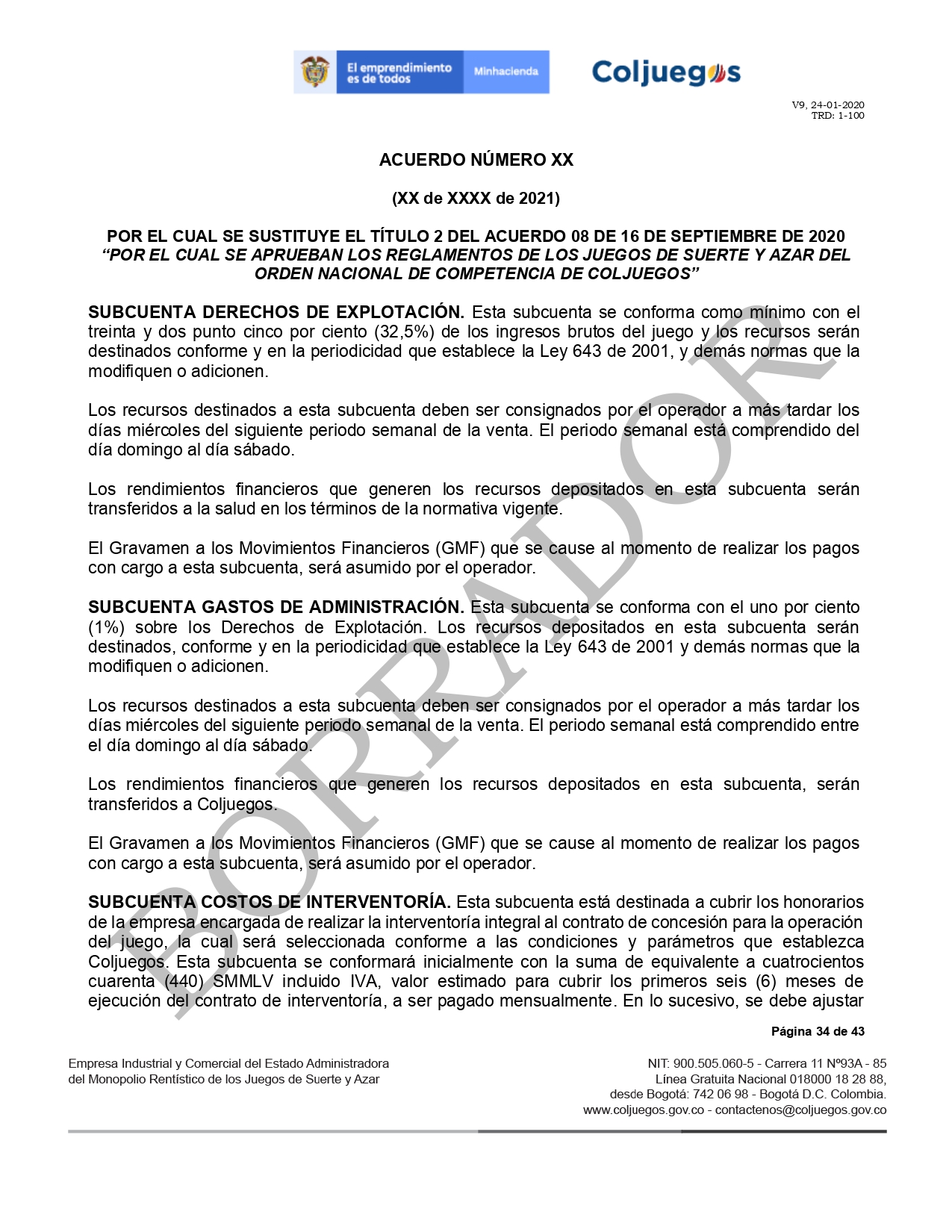 Coljuegos publico el borrador del proyecto en el que se aprueban los reglamentos de juegos de suerte y azar del orden nacional de competencia de la entidad. Para esto, los actores interesados deberán enviar sus comentarios hasta entes del 26 de abril.