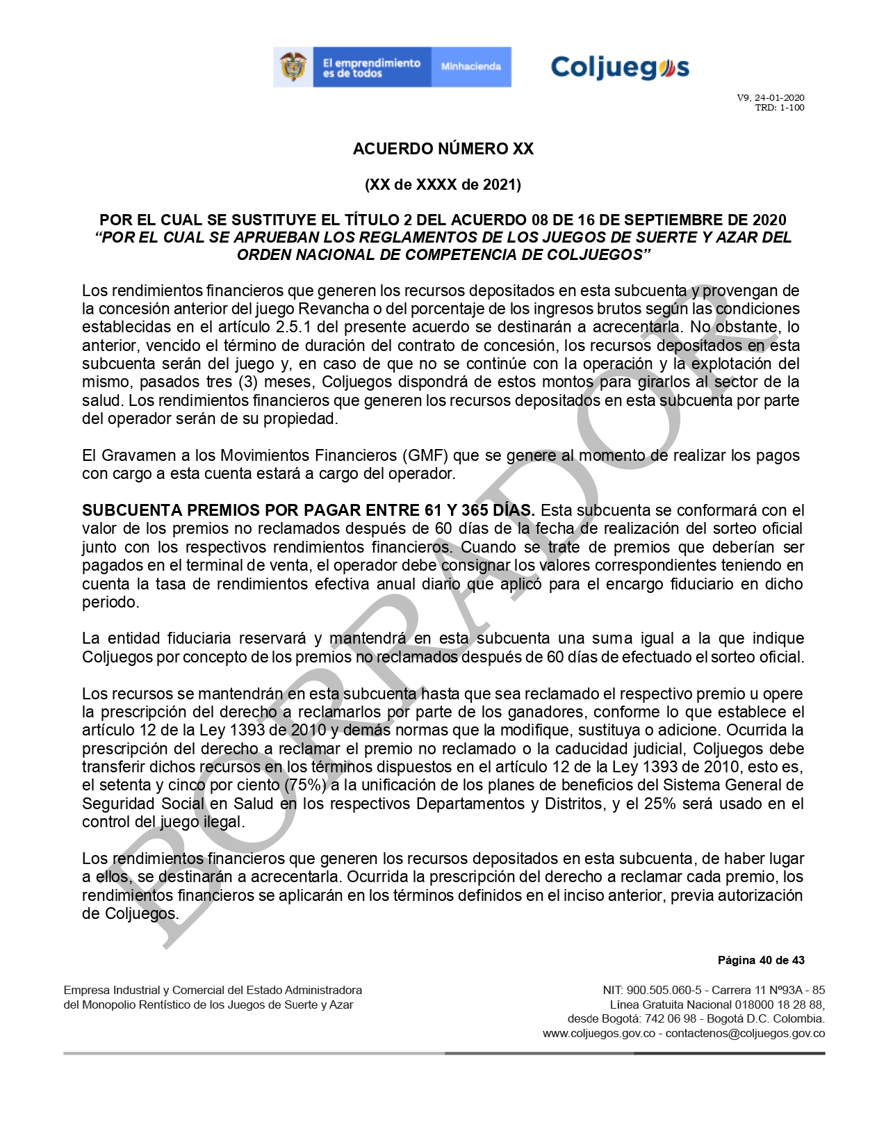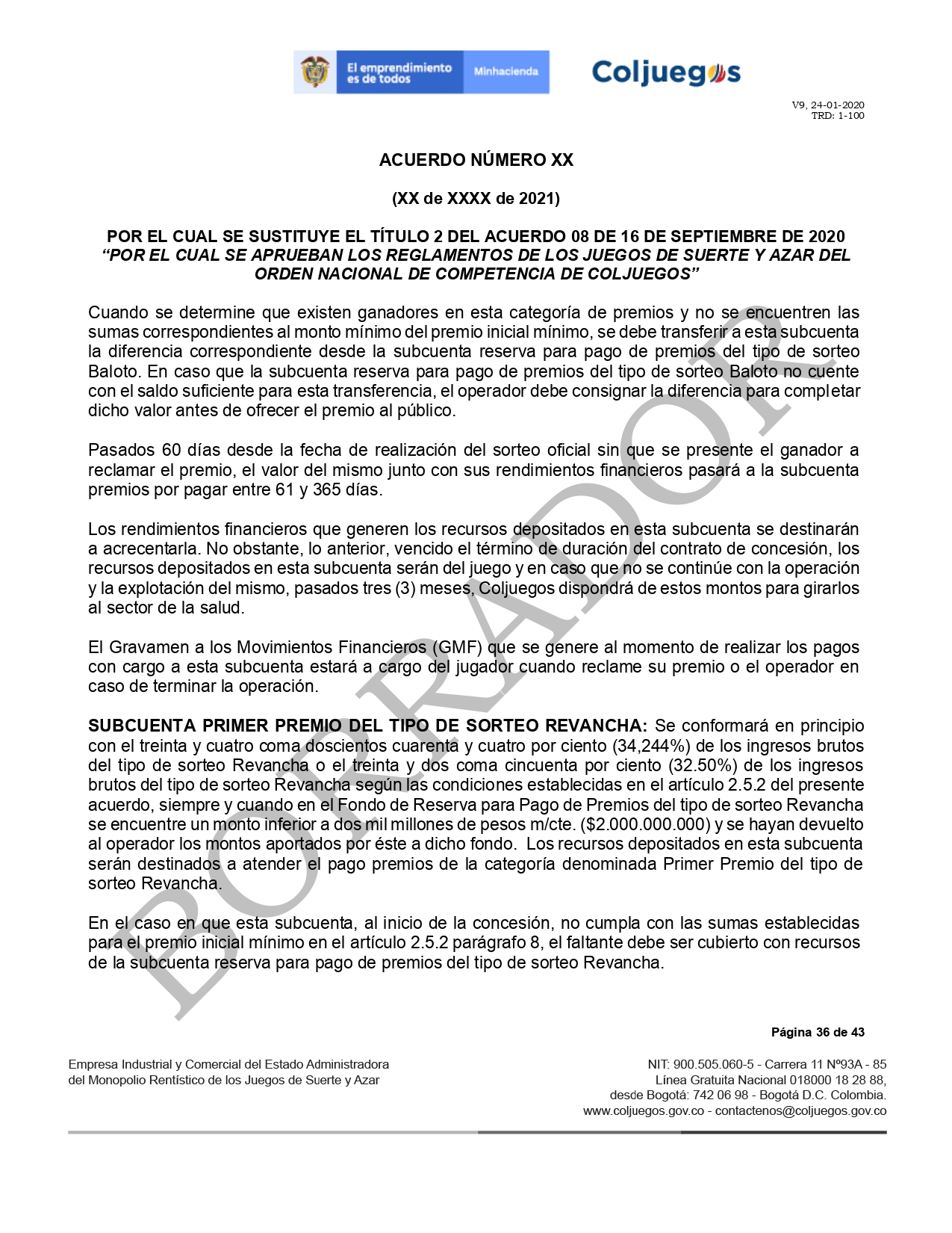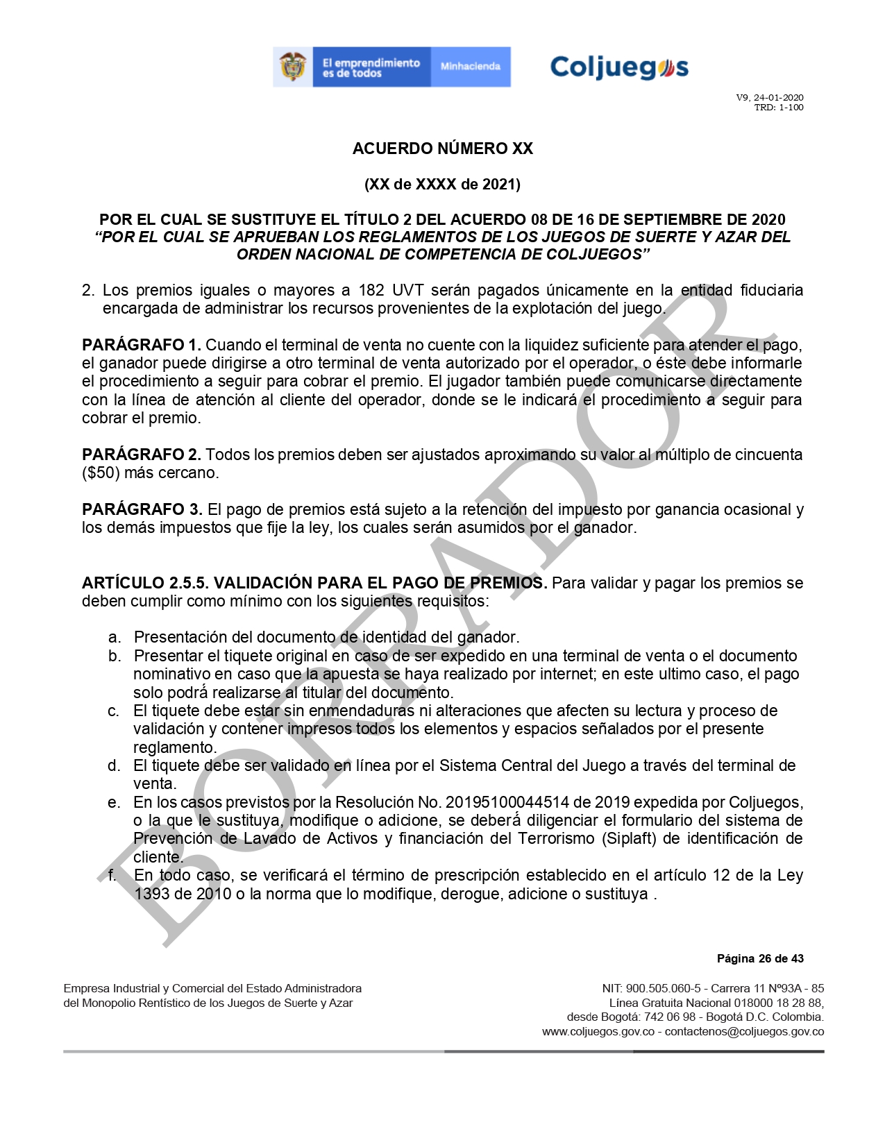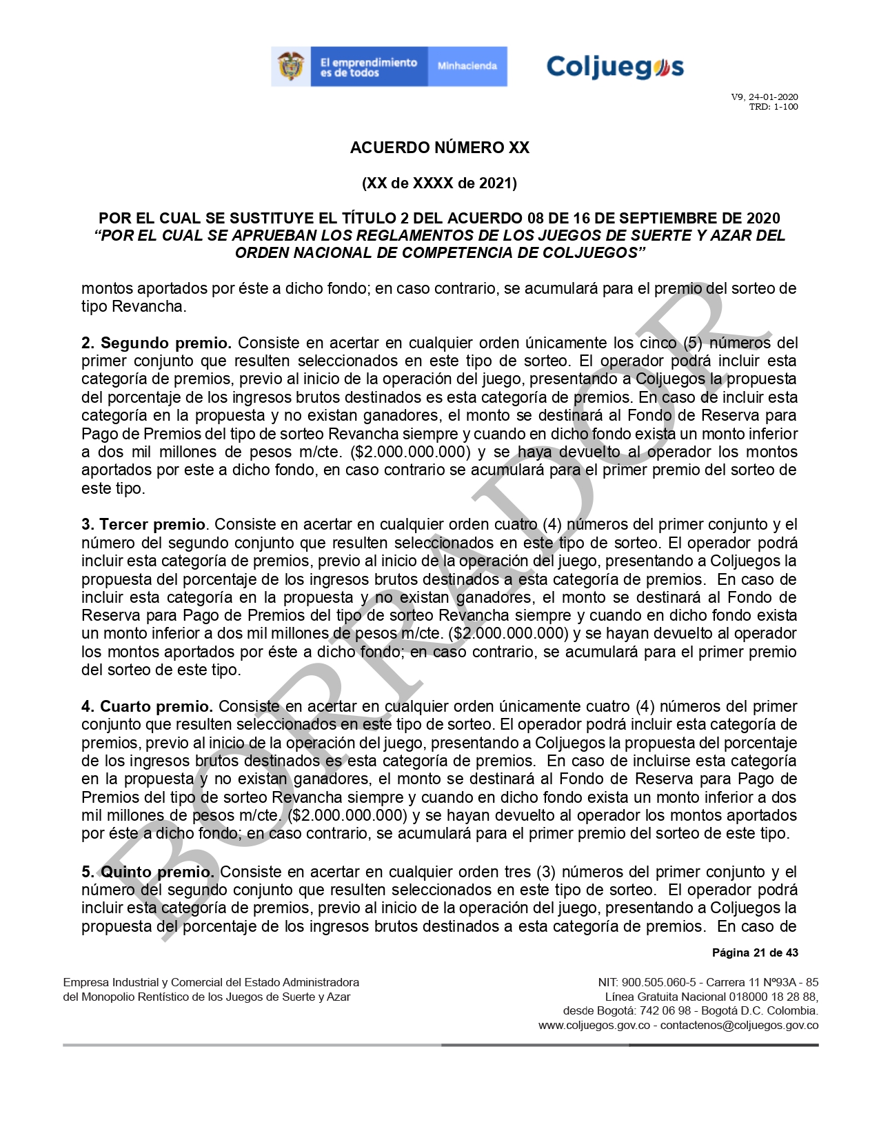 Coljuegos publico el borrador del proyecto en el que se aprueban los reglamentos de juegos de suerte y azar del orden nacional de competencia de la entidad. Para esto, los actores interesados deberán enviar sus comentarios hasta entes del 26 de abril.