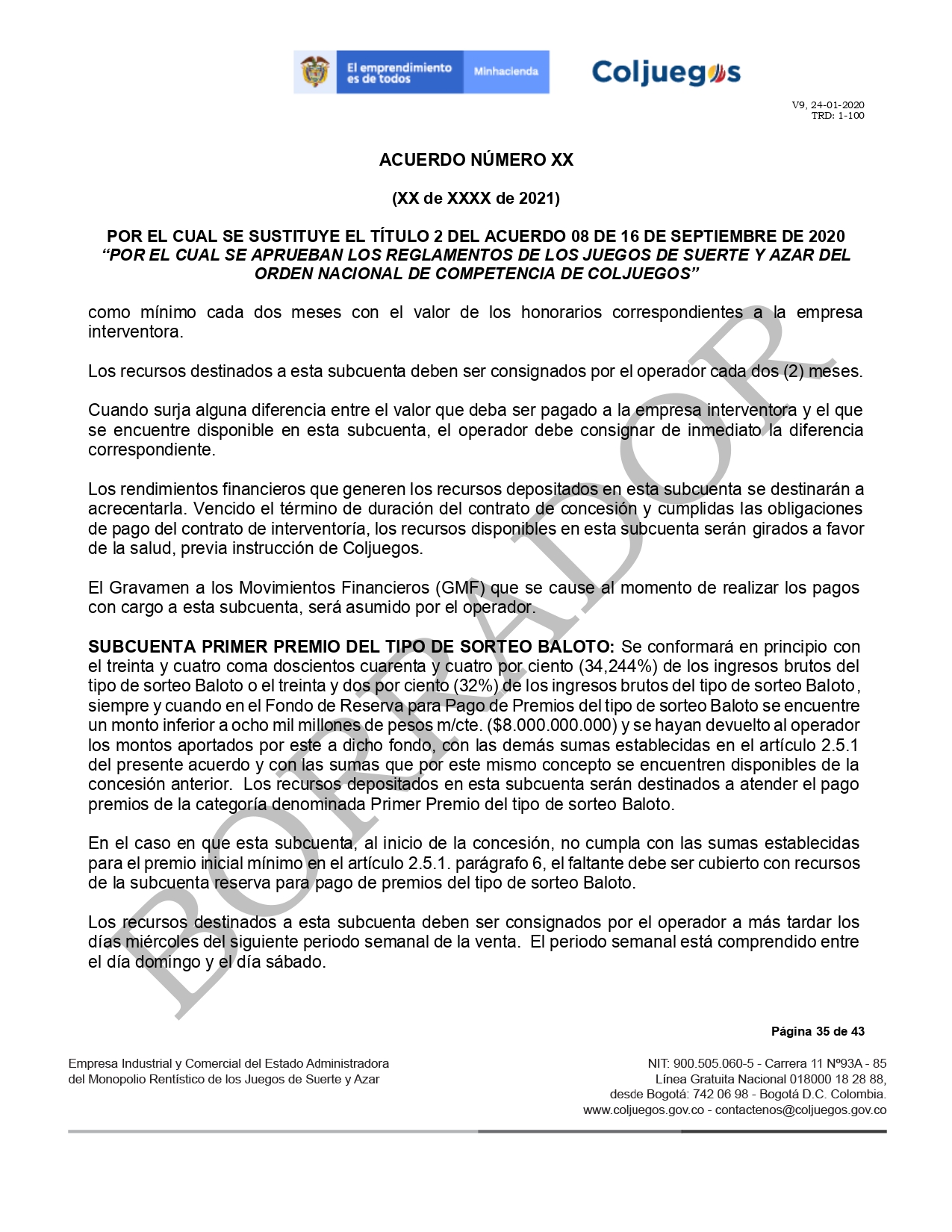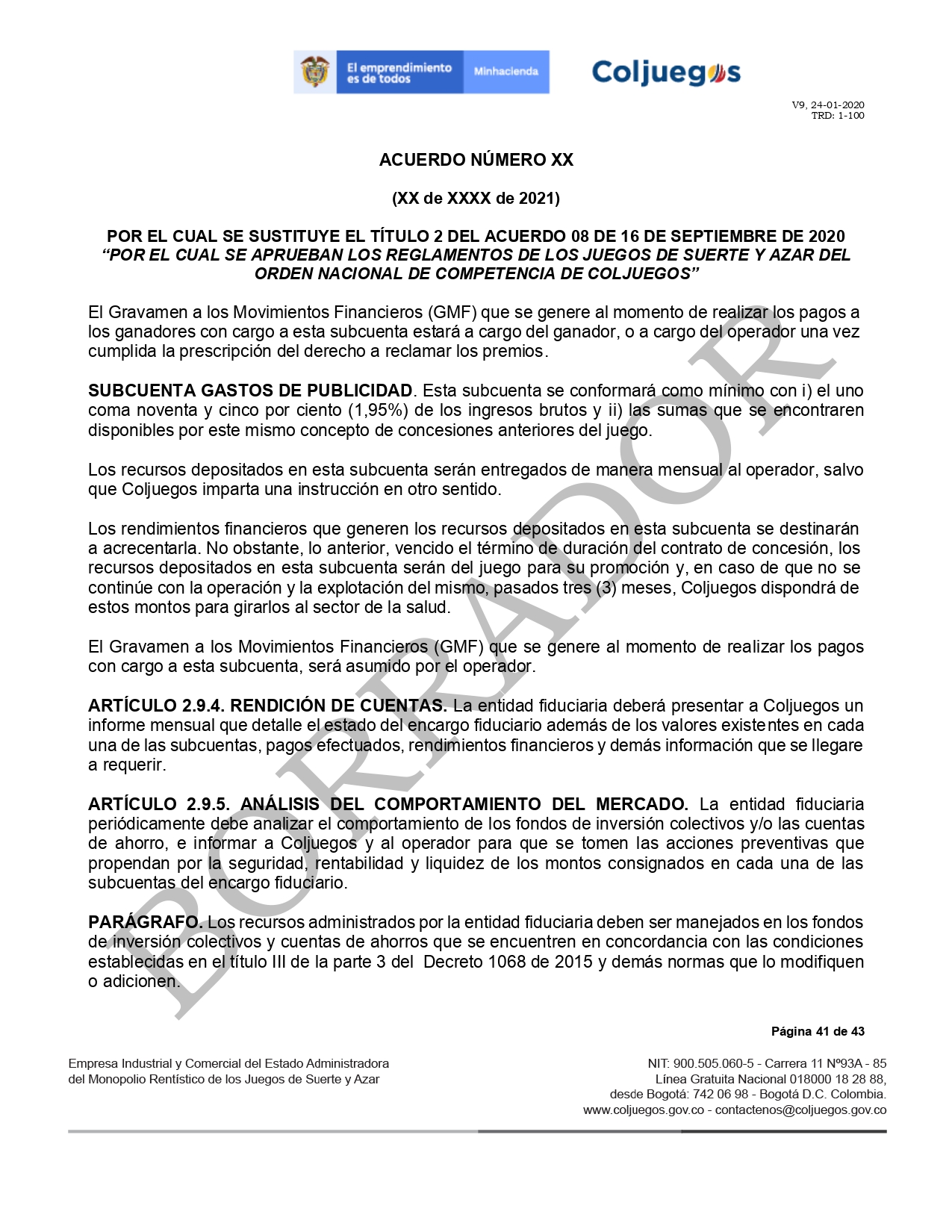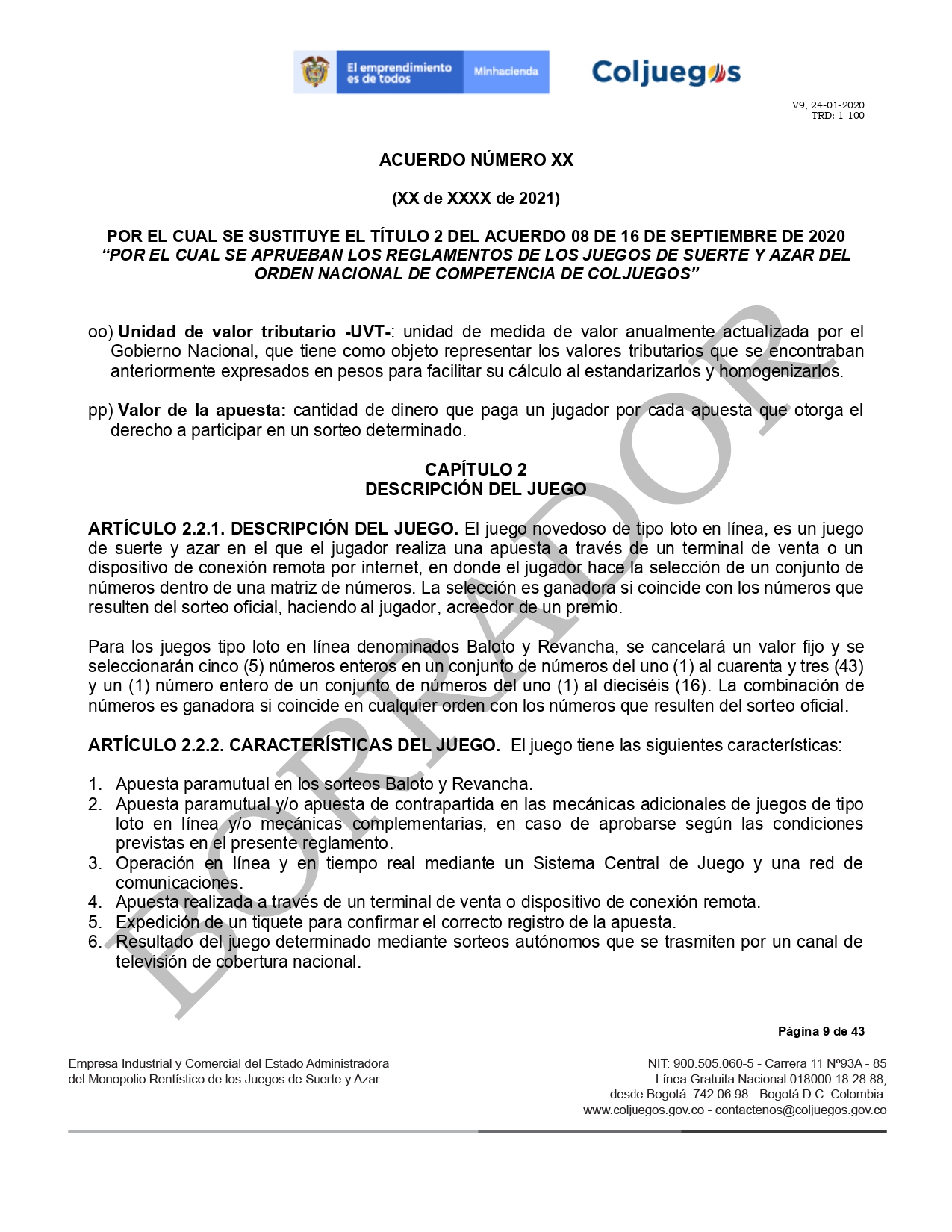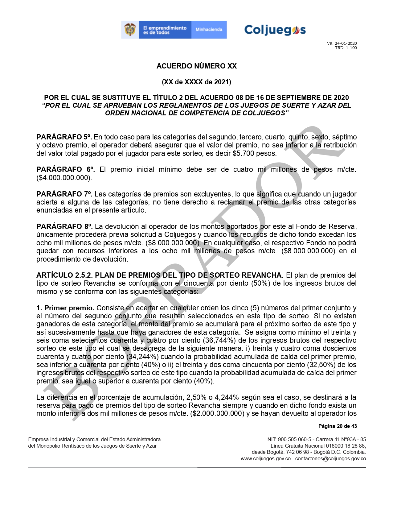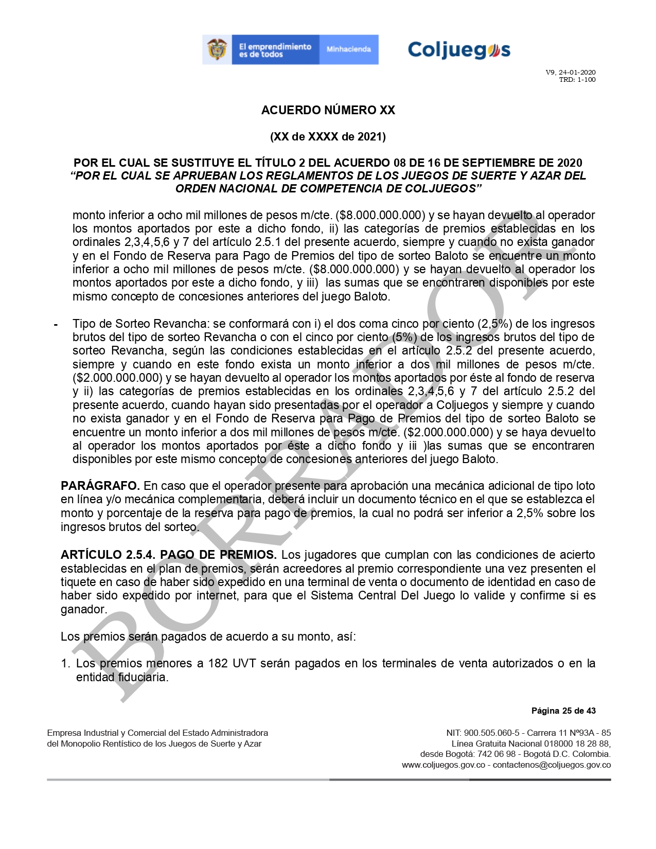 Coljuegos publico el borrador del proyecto en el que se aprueban los reglamentos de juegos de suerte y azar del orden nacional de competencia de la entidad. Para esto, los actores interesados deberán enviar sus comentarios hasta entes del 26 de abril.