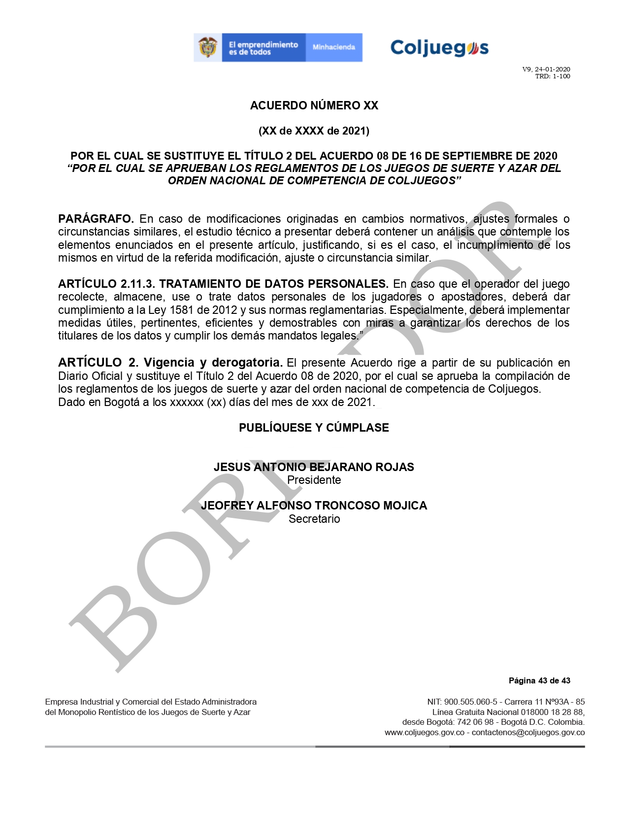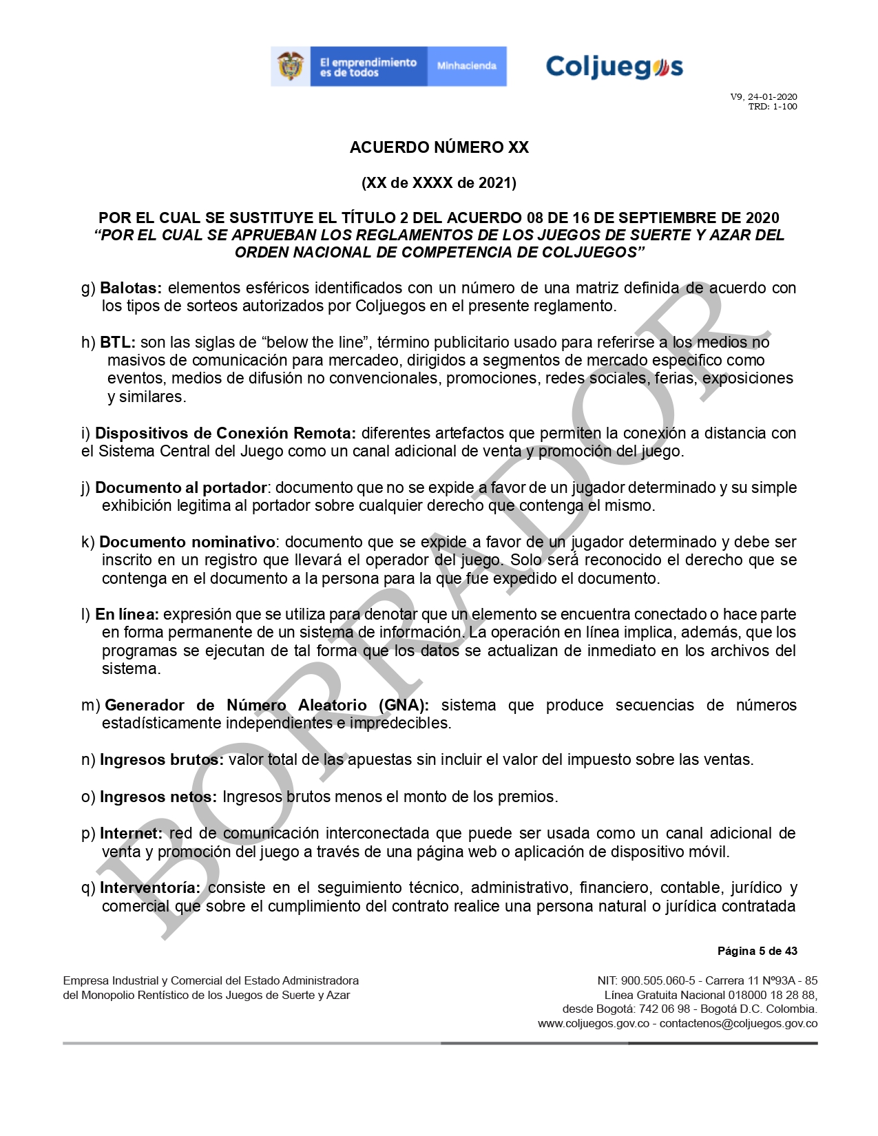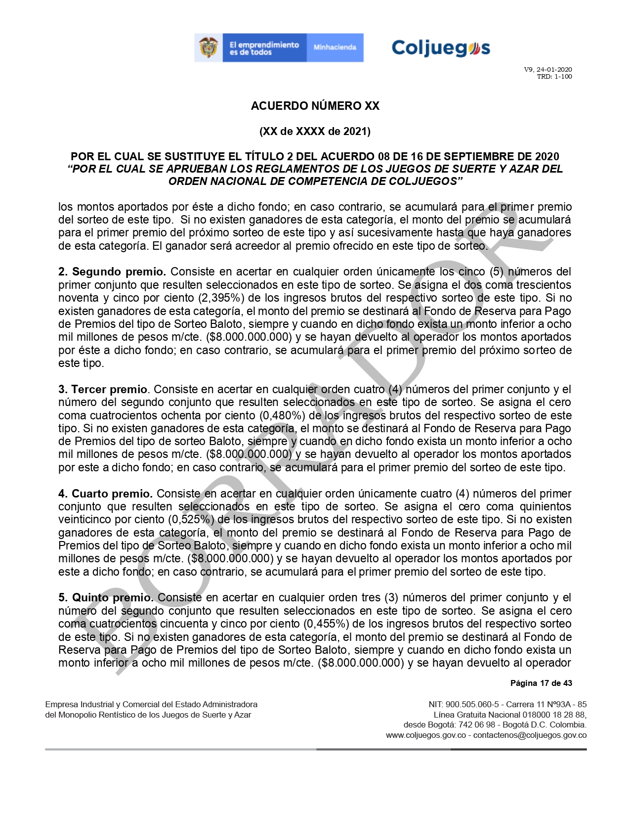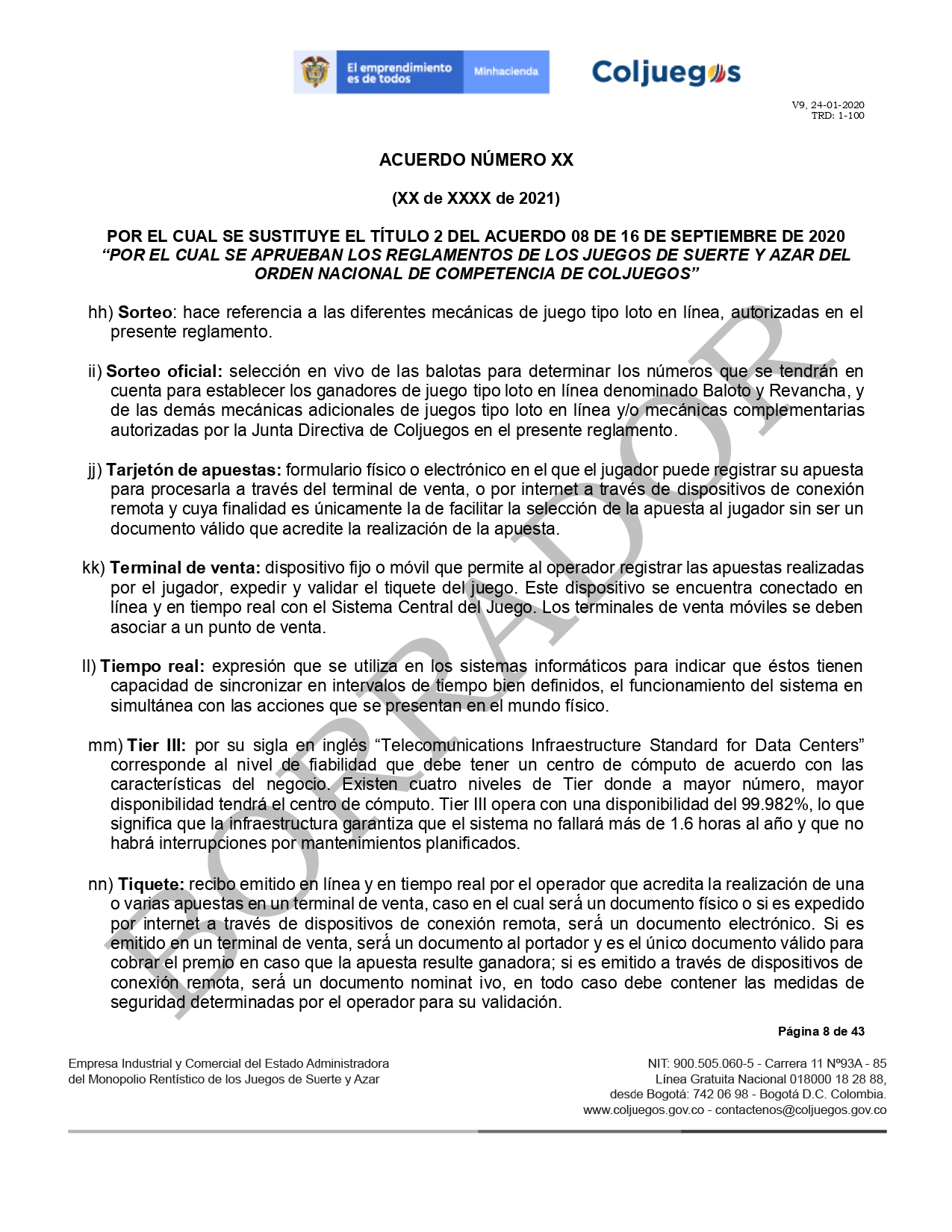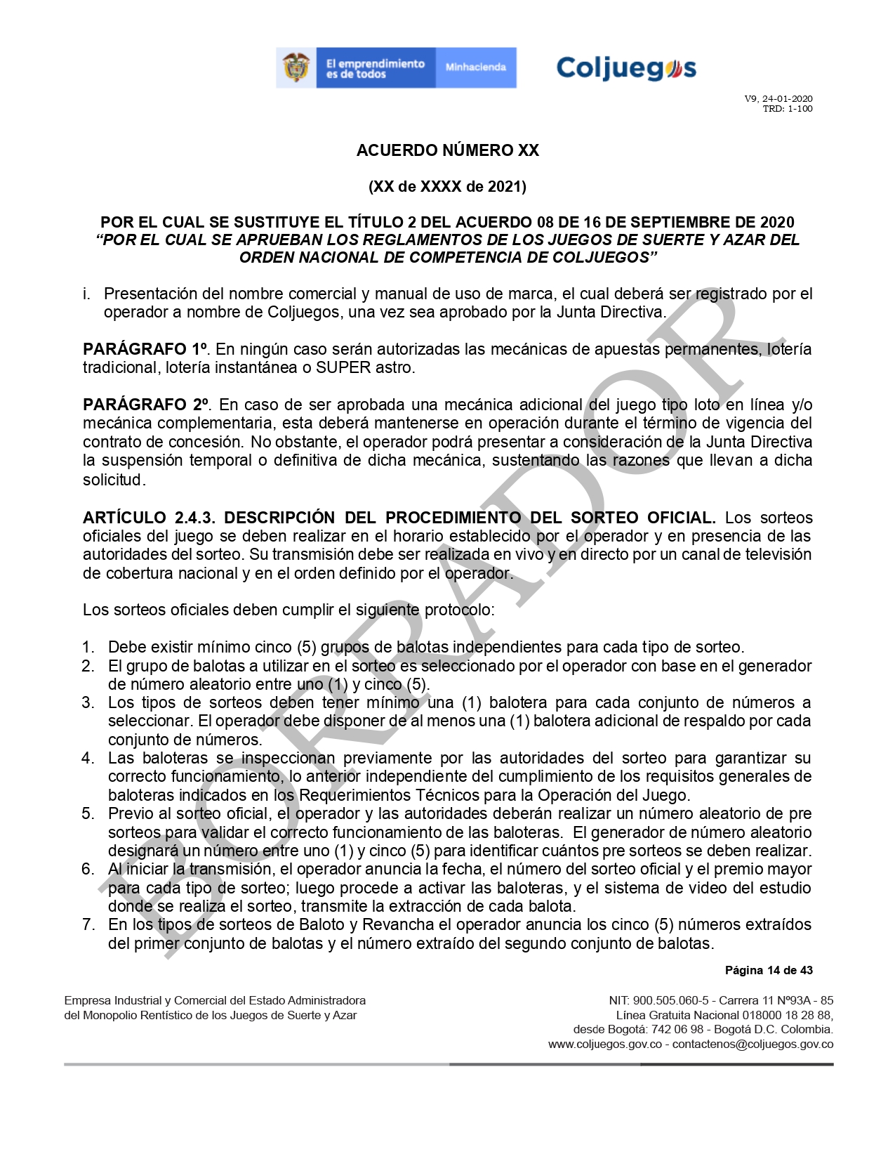 Coljuegos publico el borrador del proyecto en el que se aprueban los reglamentos de juegos de suerte y azar del orden nacional de competencia de la entidad. Para esto, los actores interesados deberán enviar sus comentarios hasta entes del 26 de abril.