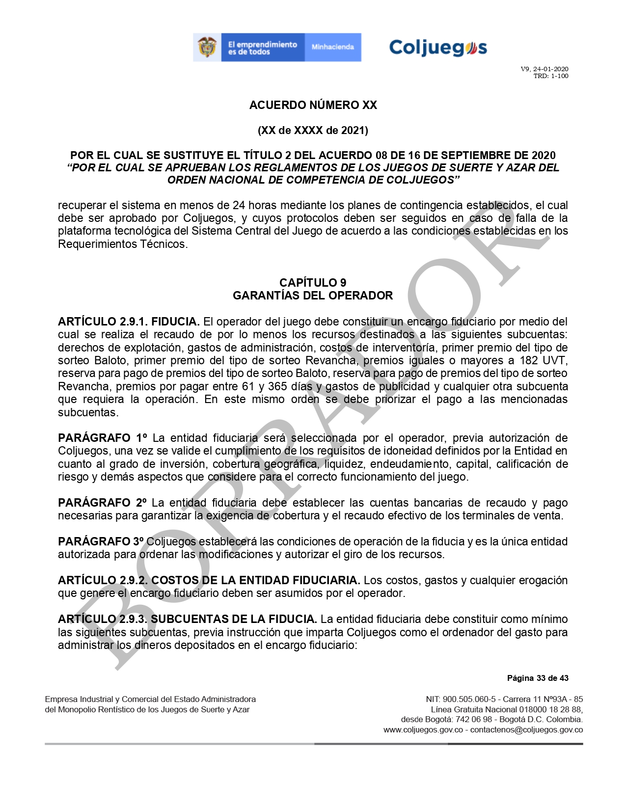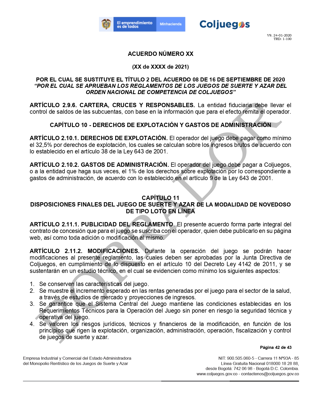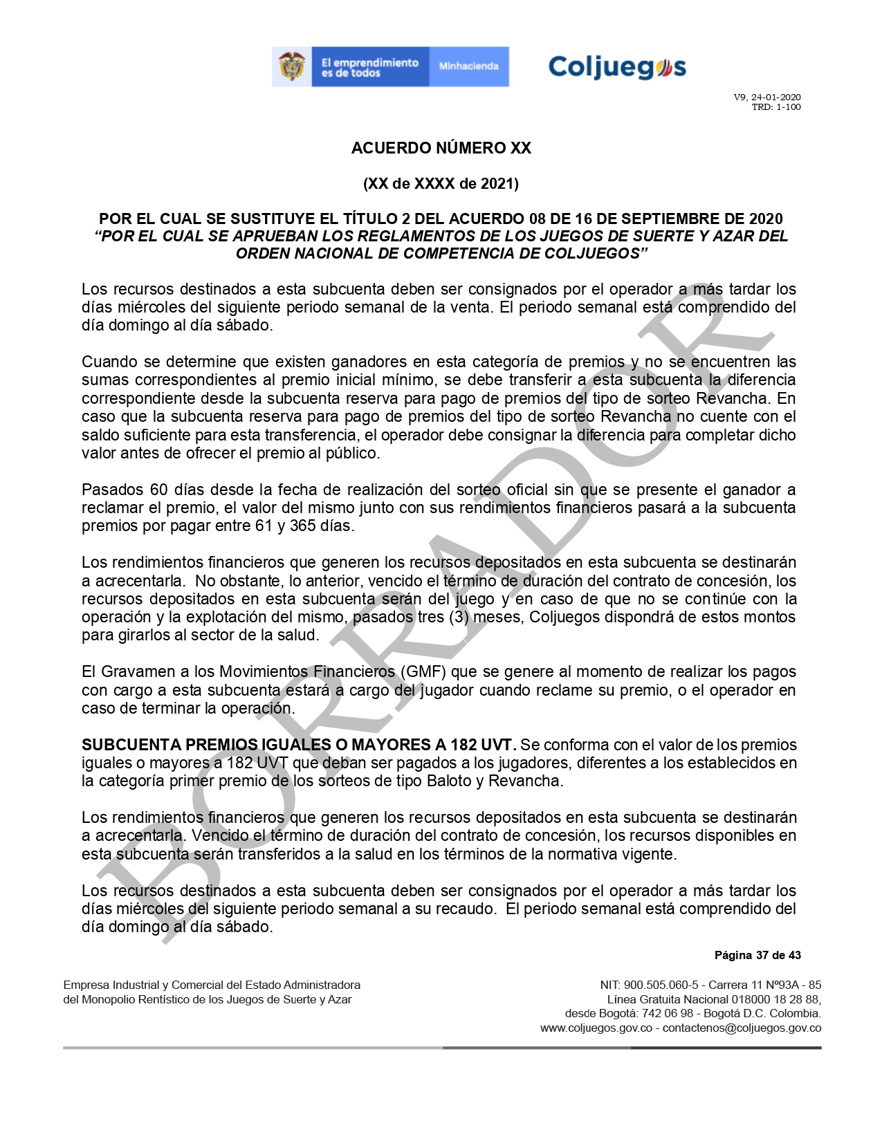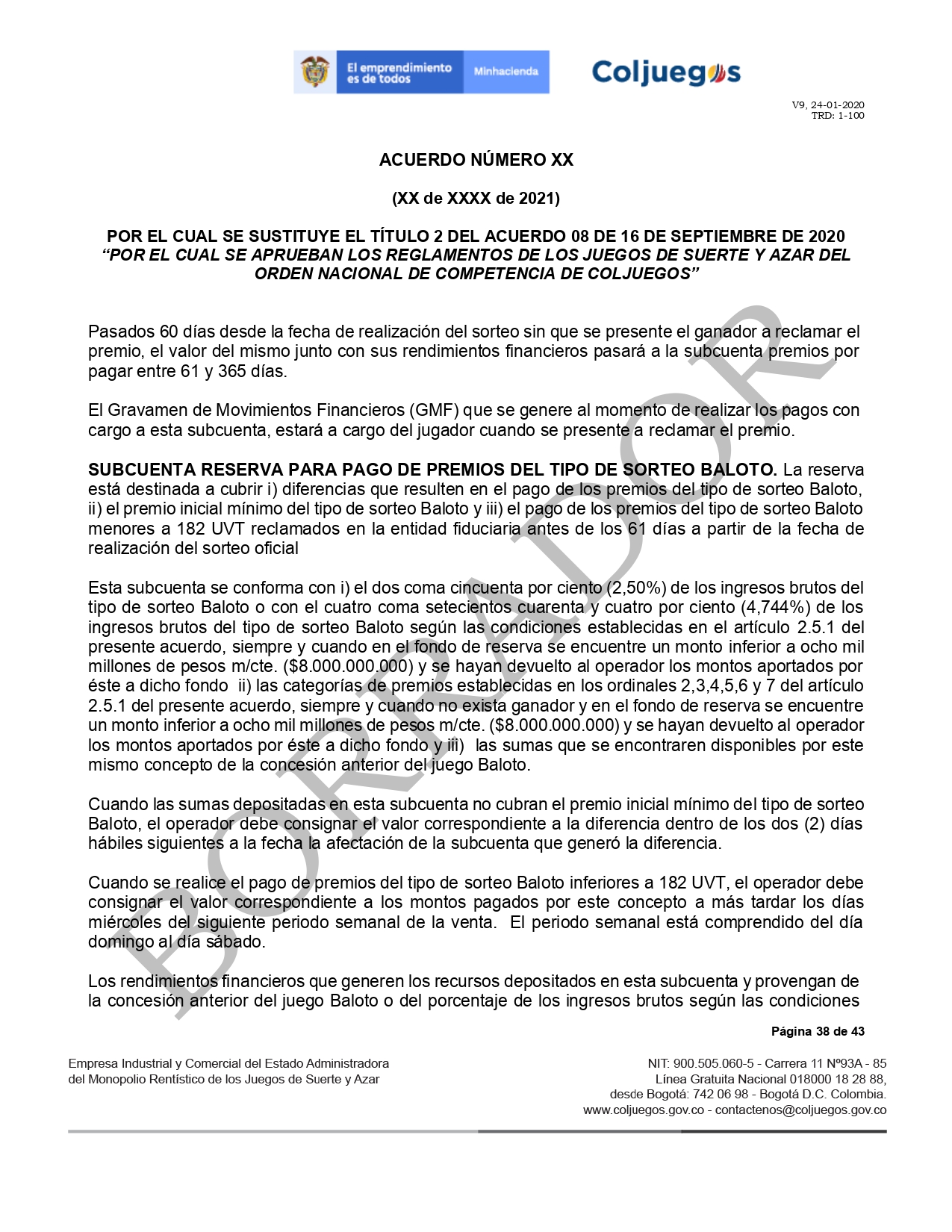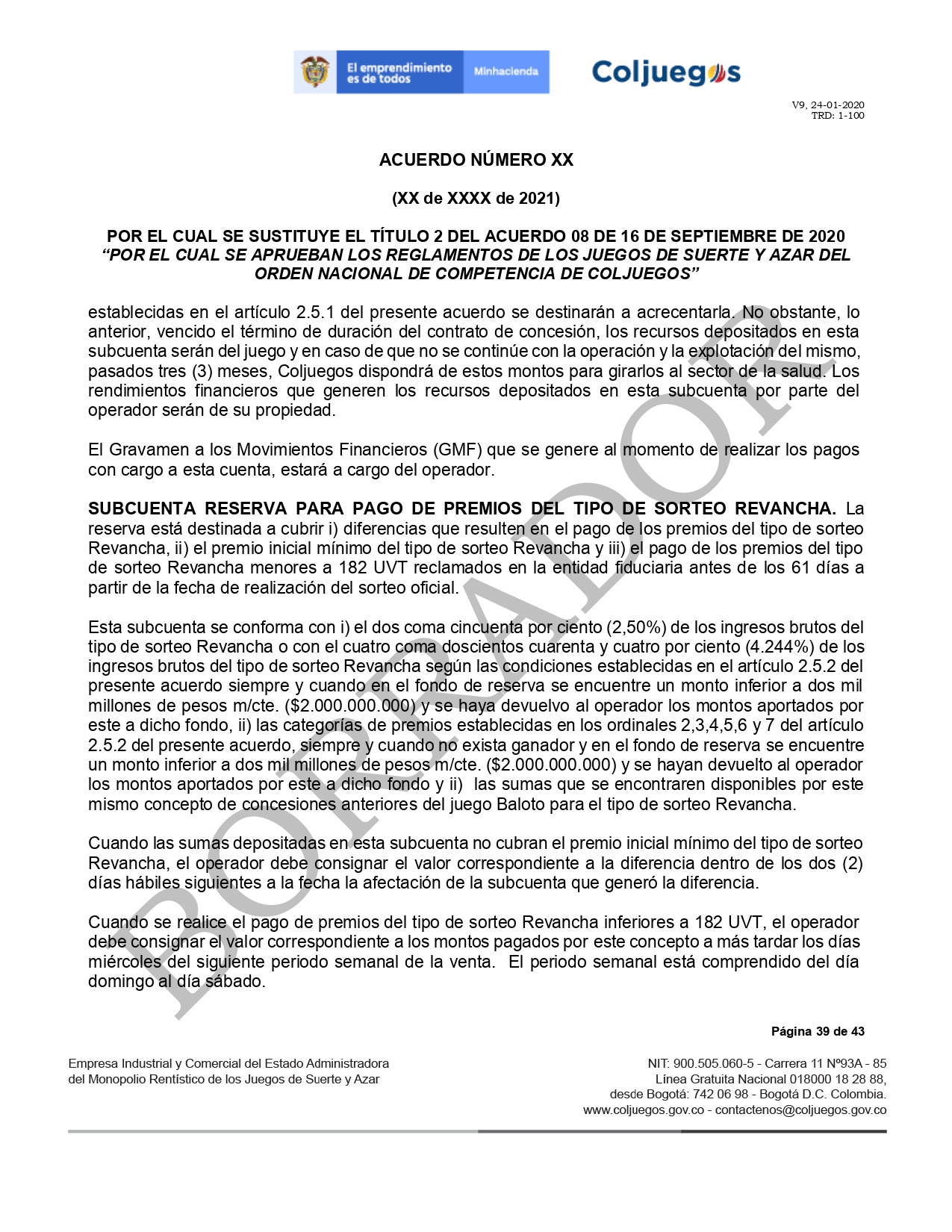 Coljuegos publico el borrador del proyecto en el que se aprueban los reglamentos de juegos de suerte y azar del orden nacional de competencia de la entidad. Para esto, los actores interesados deberán enviar sus comentarios hasta entes del 26 de abril.