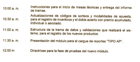 Esto en pro de continuar favoreciendo el proceso que busca diferencias “cero” en la transmisión de los datos por parte de los concesionarios, el cual va acompañado de manera directa con el Sistema de Vigilancia y Control de Apuestas en Línea (SIVICAL). Dicho encuentro tendrá la siguiente agenda: