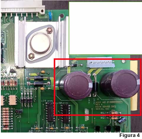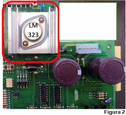 Para el buen funcionamiento del regulador LM323 es necesario hacer mantenimiento periódico de la placa principal revisando y cambiando, si es necesario, los condensadores de 6800uf ubicados en la posición U15 y U16 (figura 4).