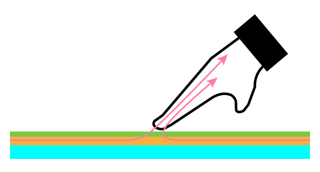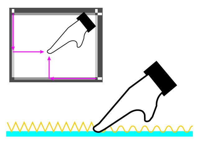 Cuando se toca la superficie del vidrio, algunas ondas acústicas se absorben, pero otras rebotan y son detectadas por los receptores piezoeléctricos. Debido a que las pantallas táctiles acústicas de ondas superficiales de ultrasonido utilizan vidrio, tienen una alta transmitancia y una larga vida útil.