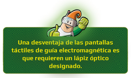 Una pantalla táctil de guía electromagnética envía una carga eléctrica que reacciona con un lápiz. Luego, el lápiz envía una señal que permite a la pantalla táctil identificar con precisión su posición. La colocación de un sensor de inducción electromagnética debajo de una pantalla de cristal líquido permite realizar operaciones muy detalladas, a diferencia de una pantalla táctil capacitiva.