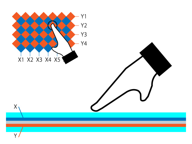 Cuando un conductor se acerca a la pantalla, el campo eléctrico entre los electrodos cambia y los sensores pueden identificar instantáneamente la ubicación en la pantalla. Las pantallas táctiles capacitivas proyectadas pueden registrar con precisión eventos multitáctiles.