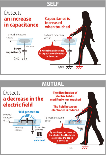 Patrones de detección táctil capacitiva propios y mutuos