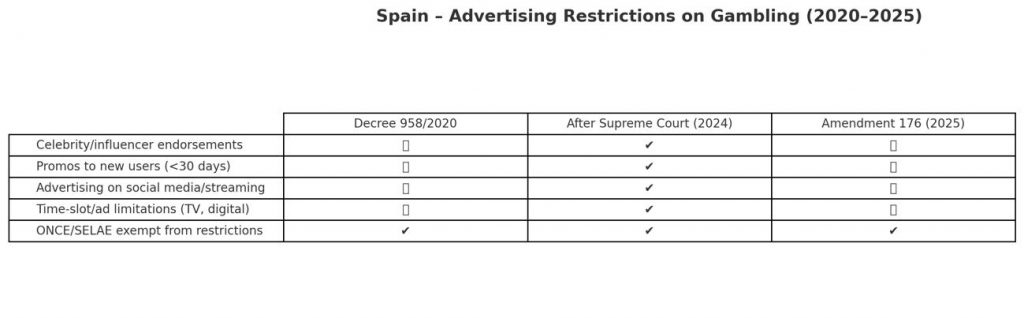 The original Royal Decree 958/2020, which imposed some of Europe’s strictest advertising bans on gambling operators, was overturned in 2024 after the Supreme Court ruled key parts unconstitutional. The court highlighted that the decree lacked sufficient legislative basis and violated regulatory proportionality.